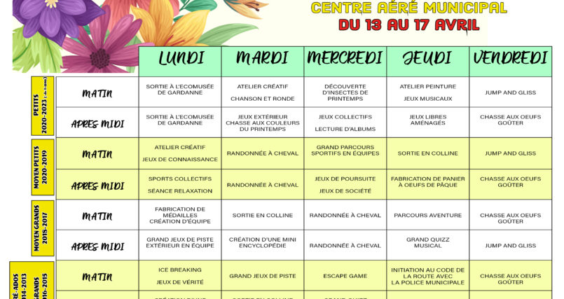 Plus d'infoPlannings du centre aéré avril 2026
