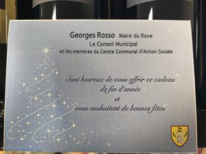 Depuis ce matin et jusqu'au vendredi 17, les séniors peuvent aller retirer à la salle des fêtes leur cadeau de fin d'année offert par la municipalité. Il s'agit d'un colis de 6 bouteilles de vins fins ou d'un coffret gourmand.
