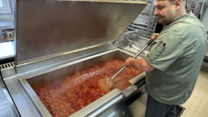 • Au restaurant scolaire, renouvellement de la chambre froide, afin d’accueillir dans les meilleures conditions 439 élèves en demi-pension dès la rentrée. Ce chiffre représente 95% des effectifs. Il s’agit d’un taux de fréquentation exceptionnel qui s’explique aussi par la qualité des plats préparés sur place par l’équipe de chefs et un tarif relativement bas. A midi, le menu est salade verte du primeur, pâtes bolognaise préparée avec 40kg de viande fraîche et barre glacée.