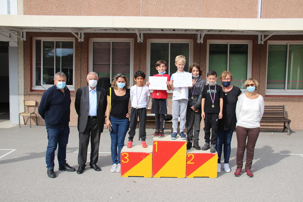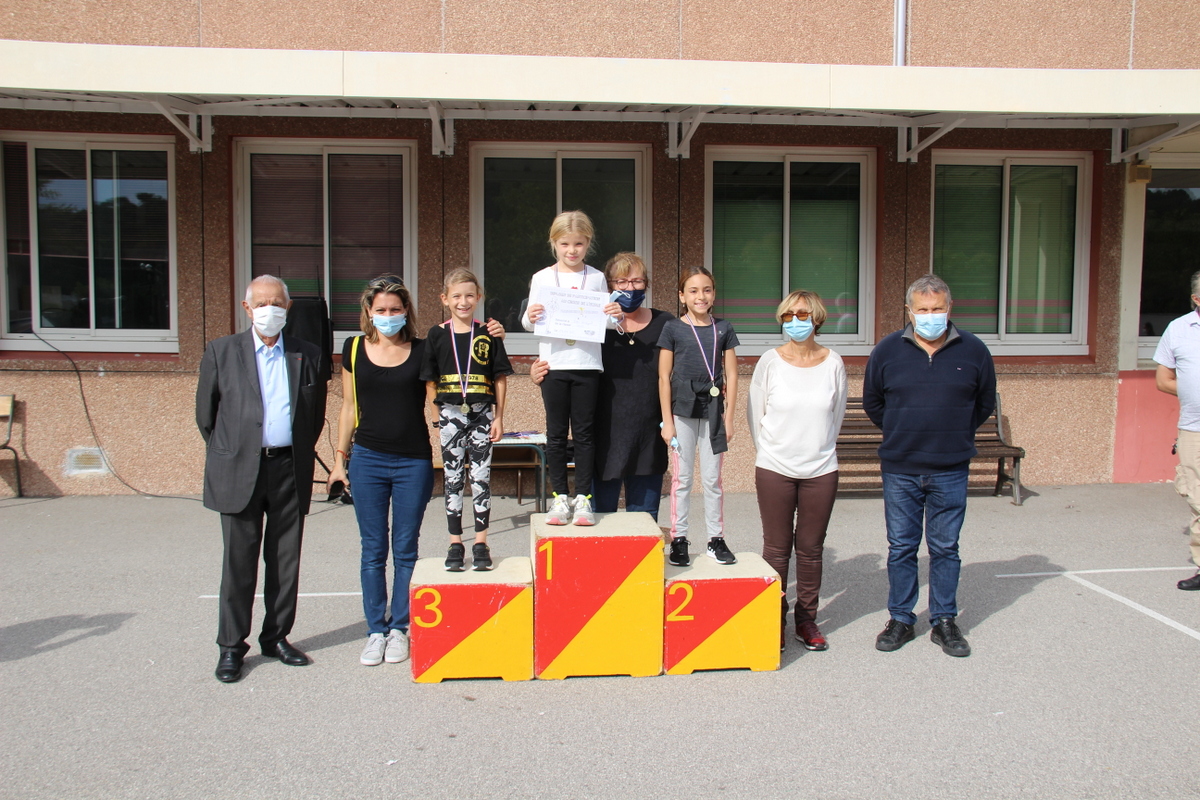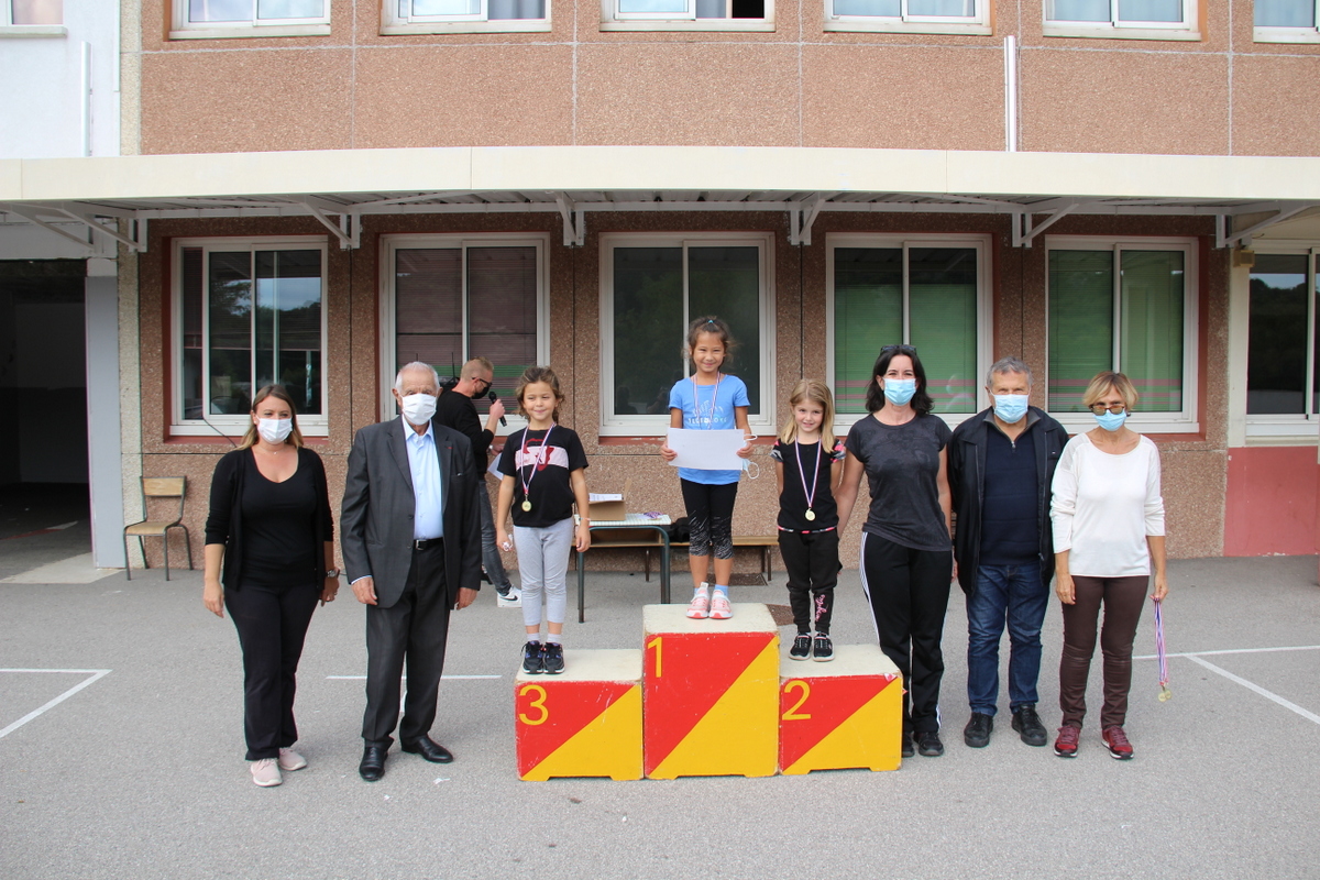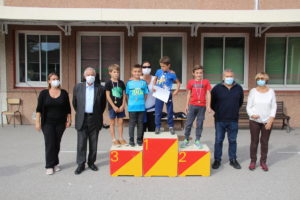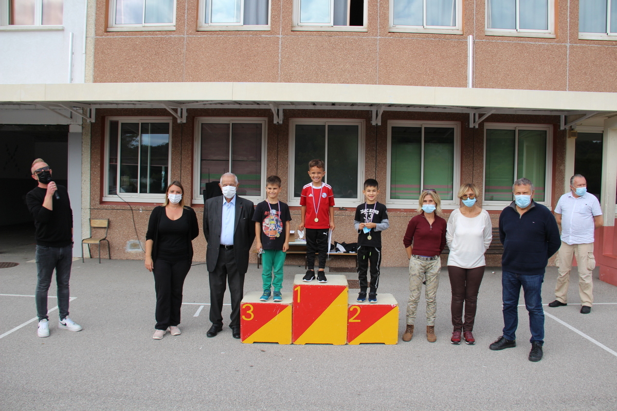 Au cours de l’après-midi, chaque enfant a été récompensé d'une médaille offerte et distribuée par le maire dans la cour de l'école, et les trois premiers de chaque catégorie (+ les exæquo) a eu droit aux honneurs avec la montée sur le podium.
