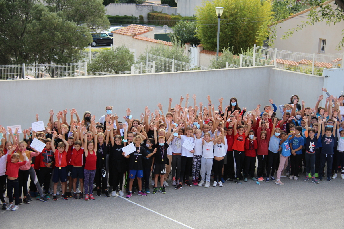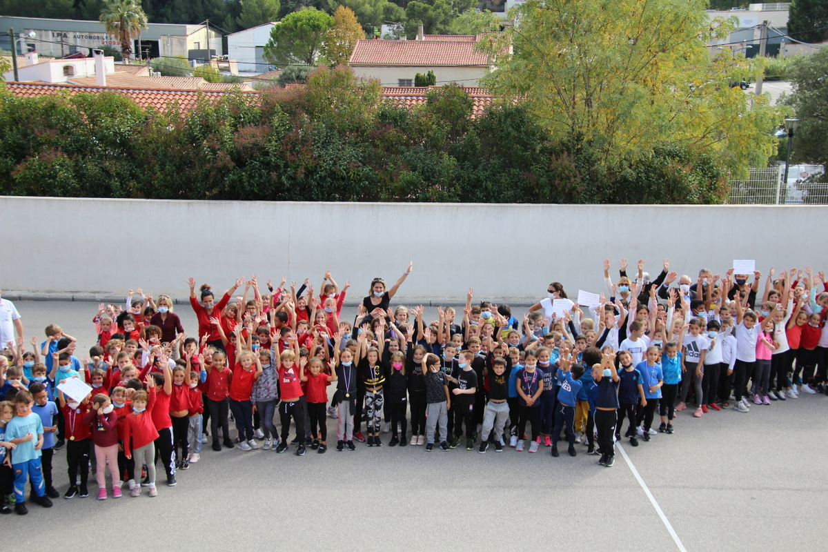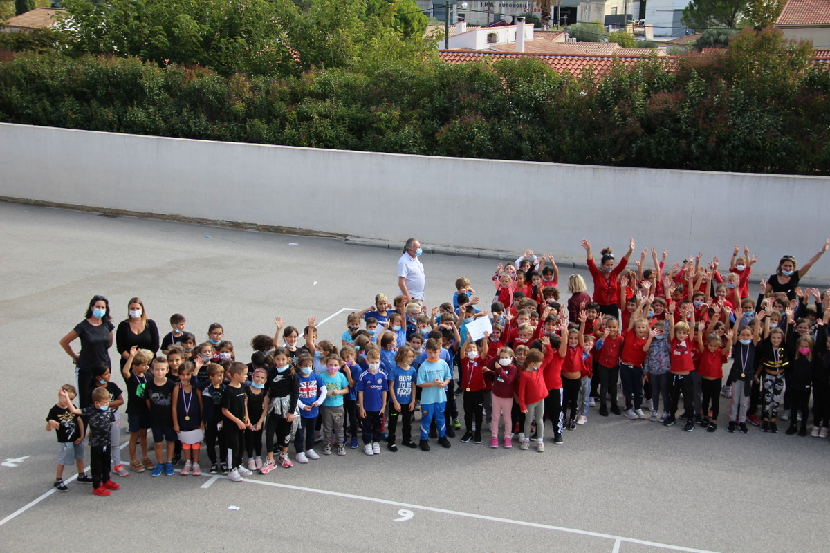 Un grand bravo aux 353 élèves de l'école élémentaire du groupe scolaire communal François Bessou qui ont couru hier matin lors du "cross de l'école" organisé sur la pelouse synthétique du stade municipal. C'est sous les encouragements de leur enseignant, de parents accompagnateurs mais surtout du maire, Georges ROSSO, de son premier adjoint et de son adjointe déléguée aux écoles, que les enfants ont effectué leurs tours de pelouse.