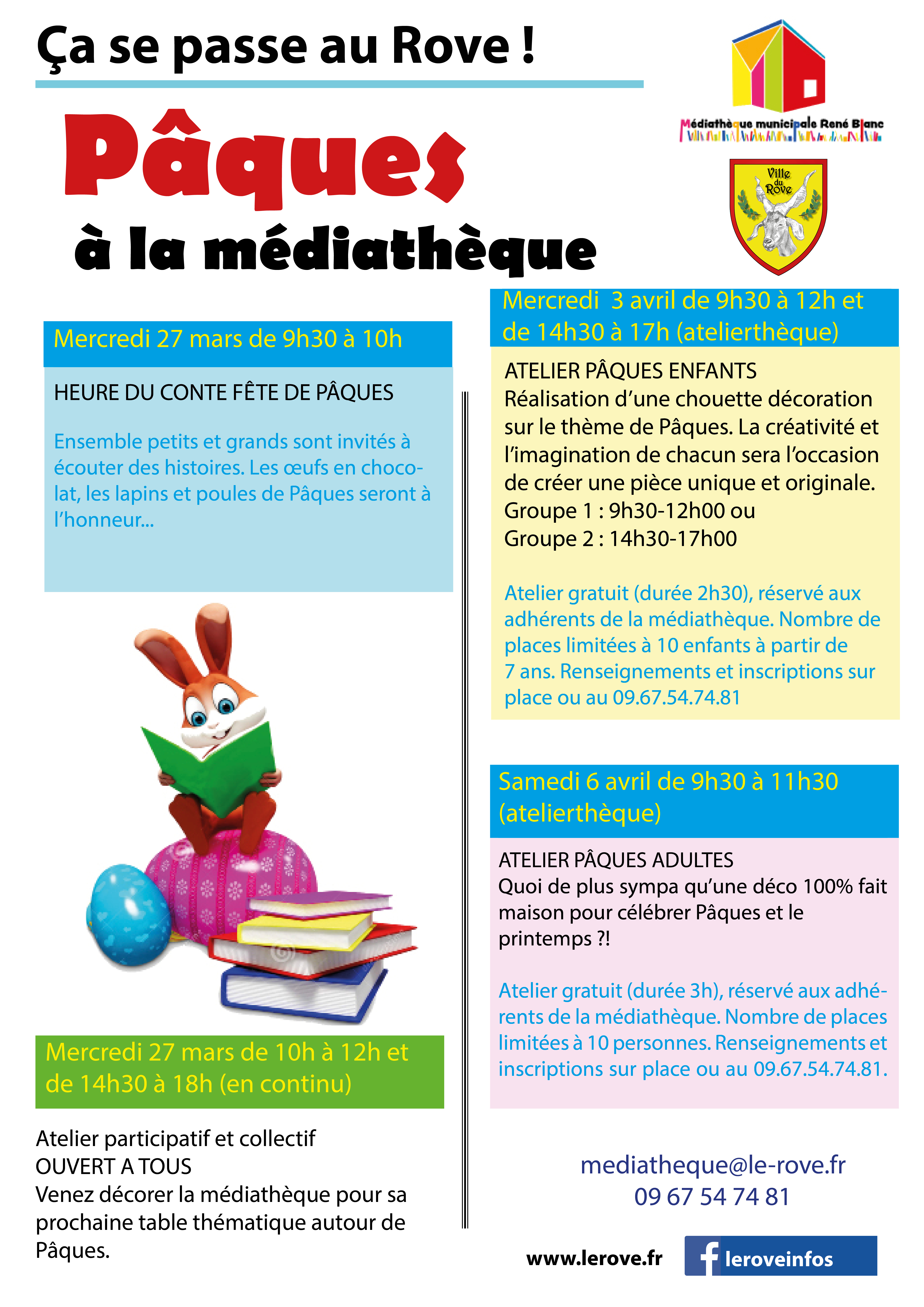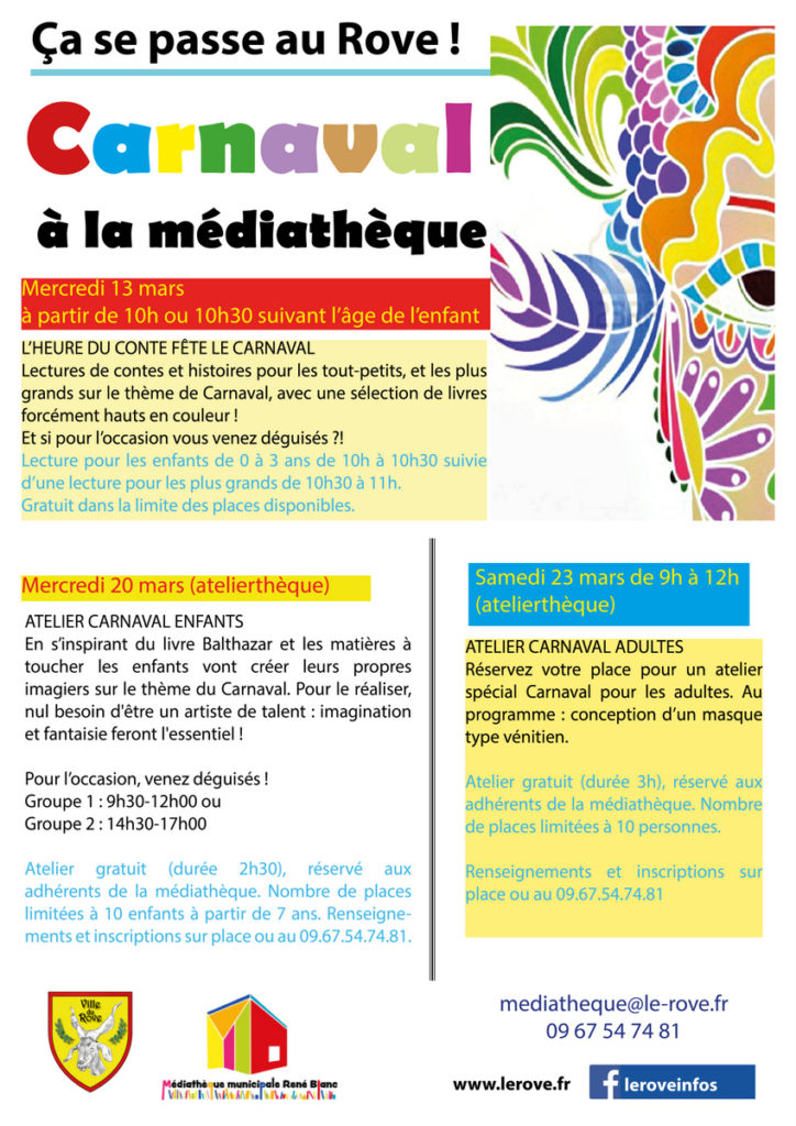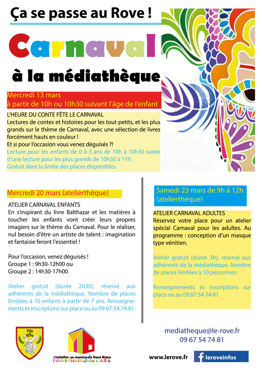 Découvrez la programmation "Printemps 2019" à la médiathèque municipale René Blanc dans l'esprit du CARNAVAL et de PÂQUES !!
