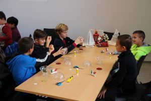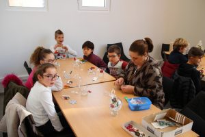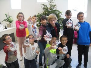 Les enfants ont pu réaliser pour leur plus grand bonheur et celui de leurs parents, une superbe boule de Noël à fixer sur le sapin. Chacun est reparti fièrement avec sa création.