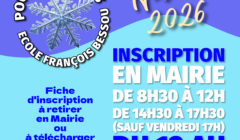 Les inscriptions pour le centre aéré d'Hiver 2026 s’effectueront en mairie du 12 au 16 janvier de 8h30 à 12h et 14h30 à 17h30 (sauf vendredi 17h). Les fiches d'inscriptions sont à retirer sur place ou à télécharger ci-dessous à partir du 9 janvier. *Fiche d'inscription *Fiche de renseignements Le centre aéré municipal ouvrira ses portes Lundi 16 ...