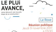 Plan Local d’Urbanisme intercommunal – Réunion publique au Rove le 9 novembre Aujourd'hui, le chantier du règlement et du zonage du plan local d’urbanisme intercommunal (PLUi) a été engagé. Une deuxième série de 27 réunions publiques est donc prévue durant le mois de novembre 2017. Celles-ci se dérouleront dans les 18 communes qui composent le Territoire Marseille-Provence. Chaque réunion présentera, ...
