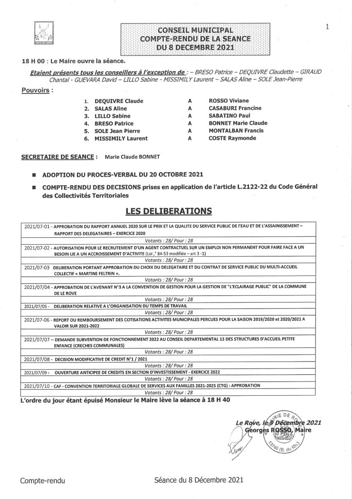 Le compte rendu de séance du conseil municipal du mercredi 8 décembre, est disponible ci-dessous :