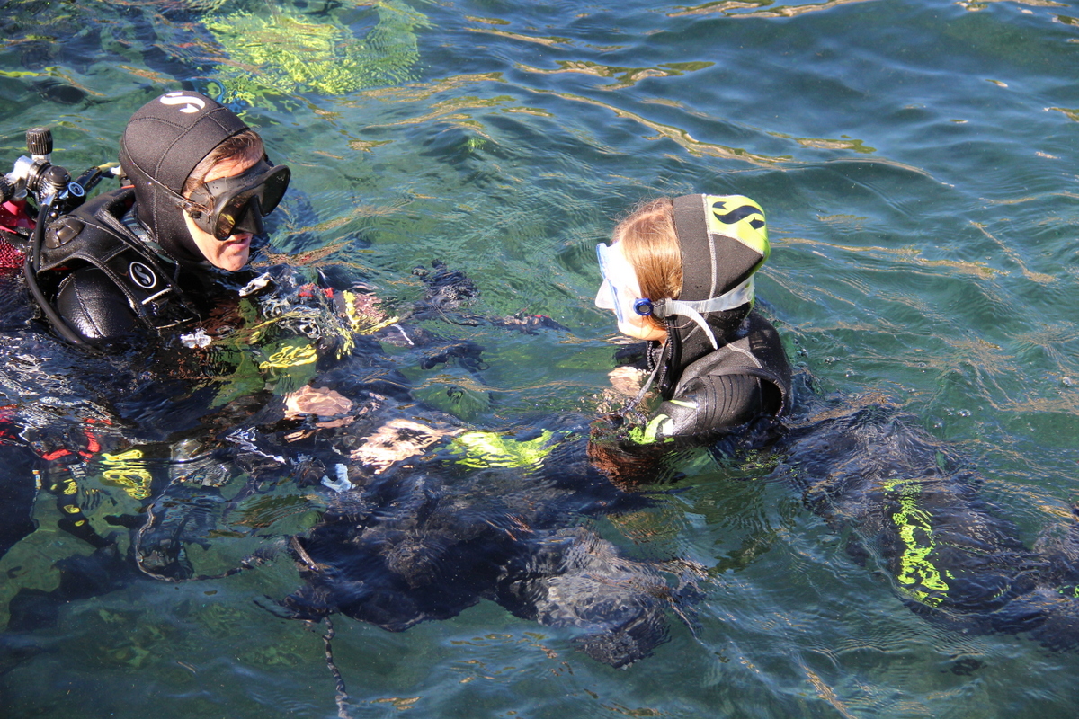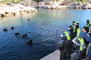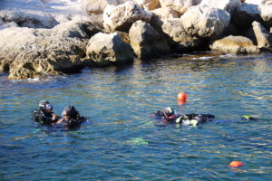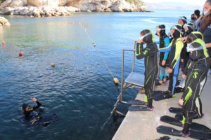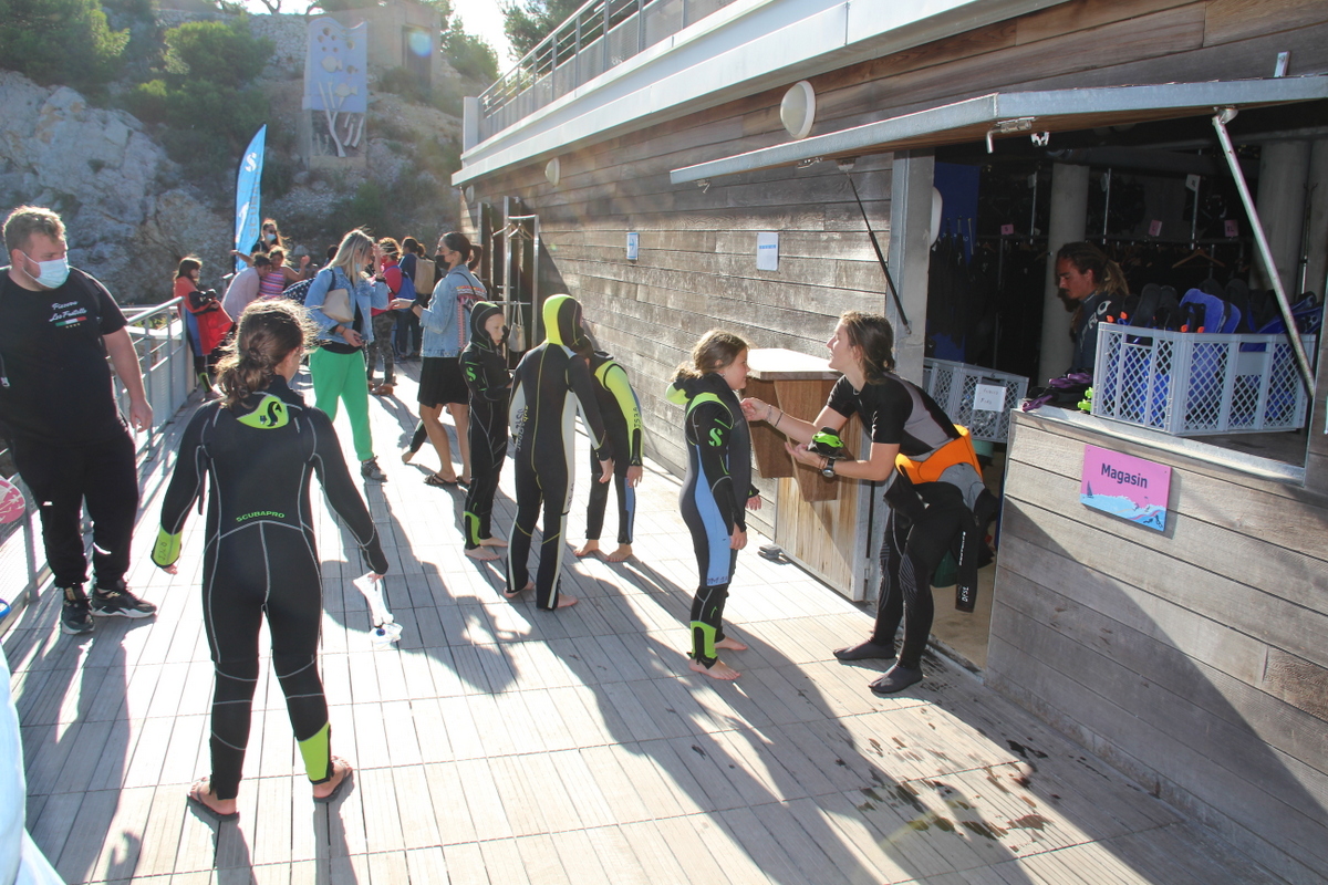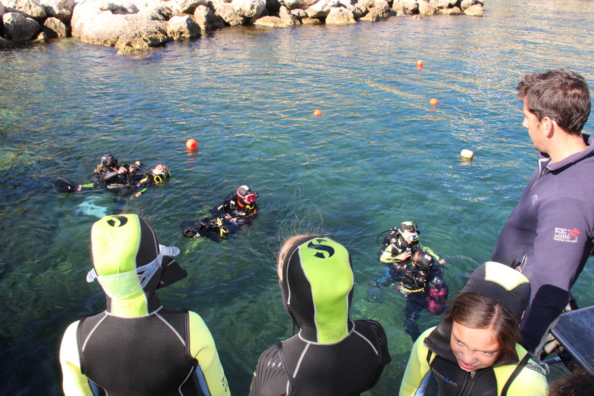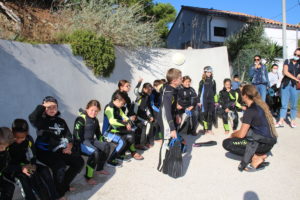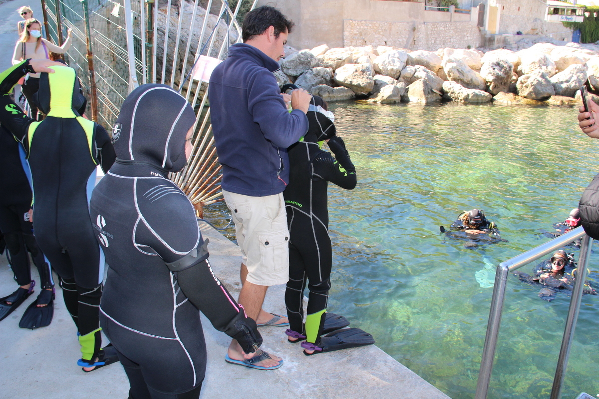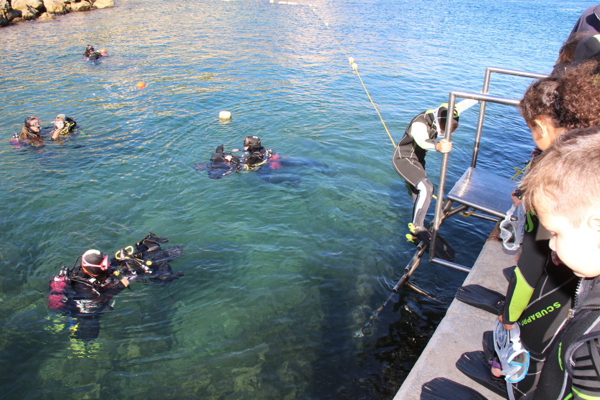 Mercredi 29 septembre, 36 élèves (29 cm1 de mme Gianazzi + 7 cm1 de M. Guevara) ont effectué leur baptême de plongée sur le quai du centre UCPA de Niolon, dans le cadre des classes de mer financées par la municipalité du Rove et organisées en partenariat avec le parc marin de la côte bleue.