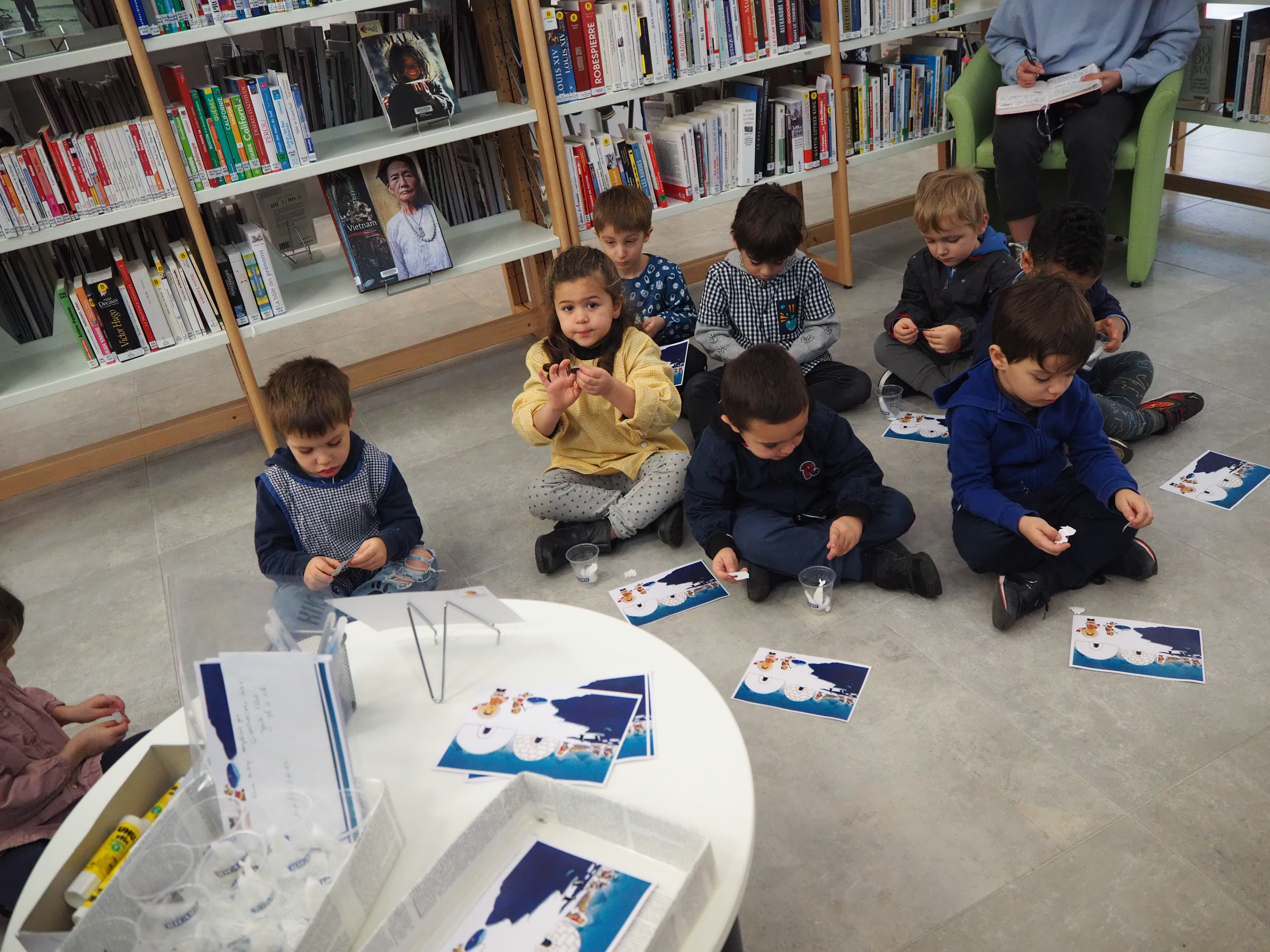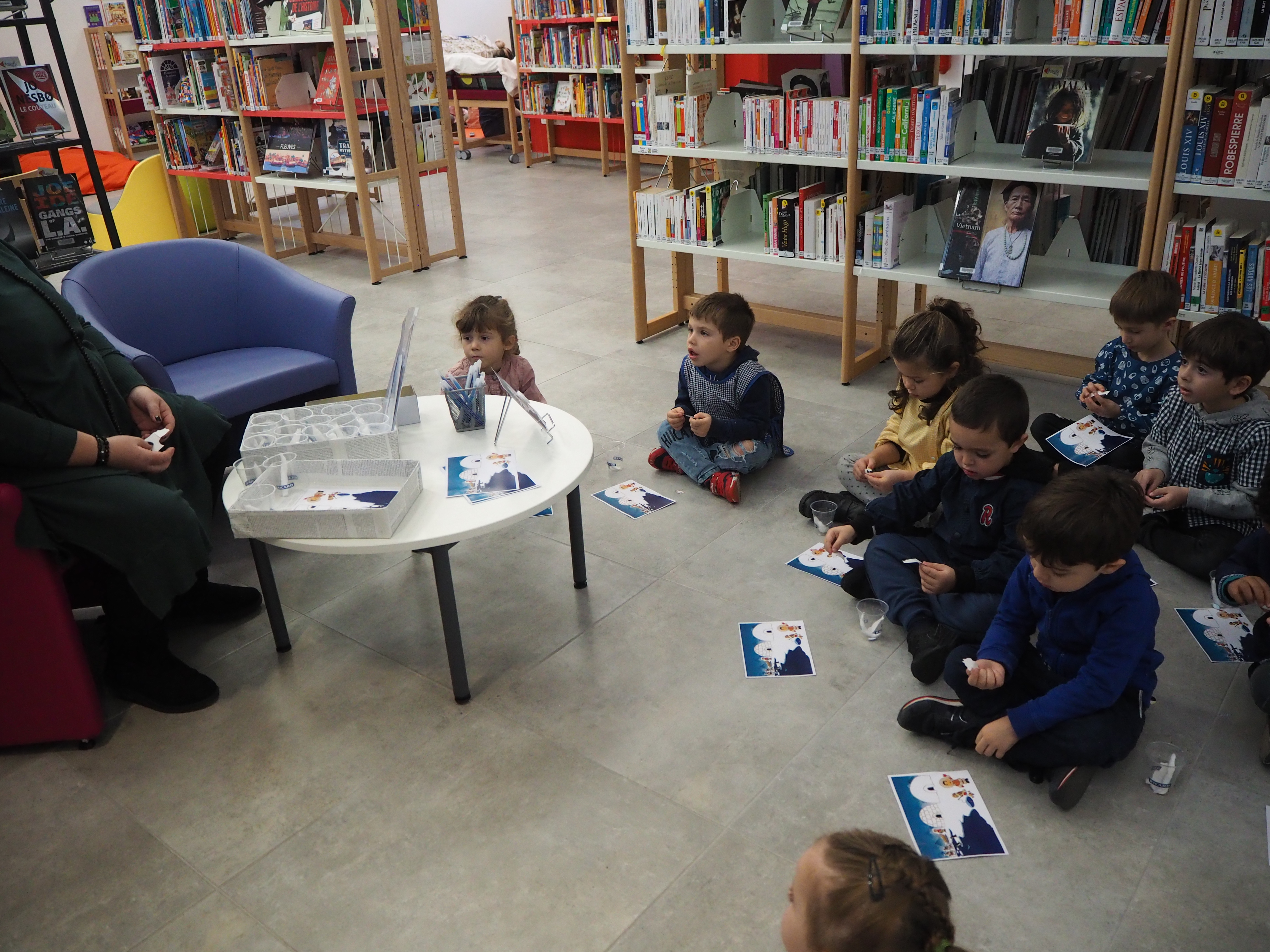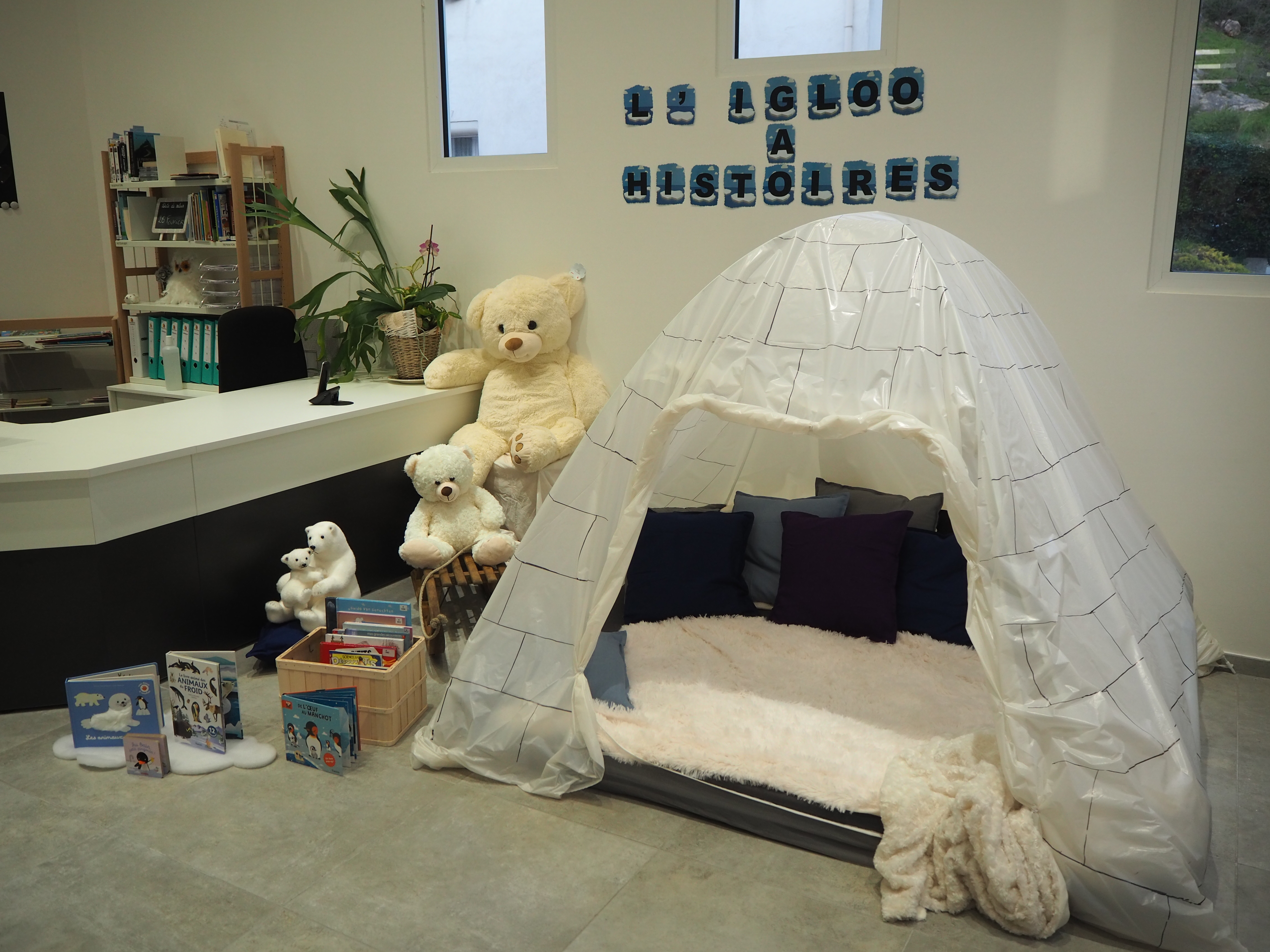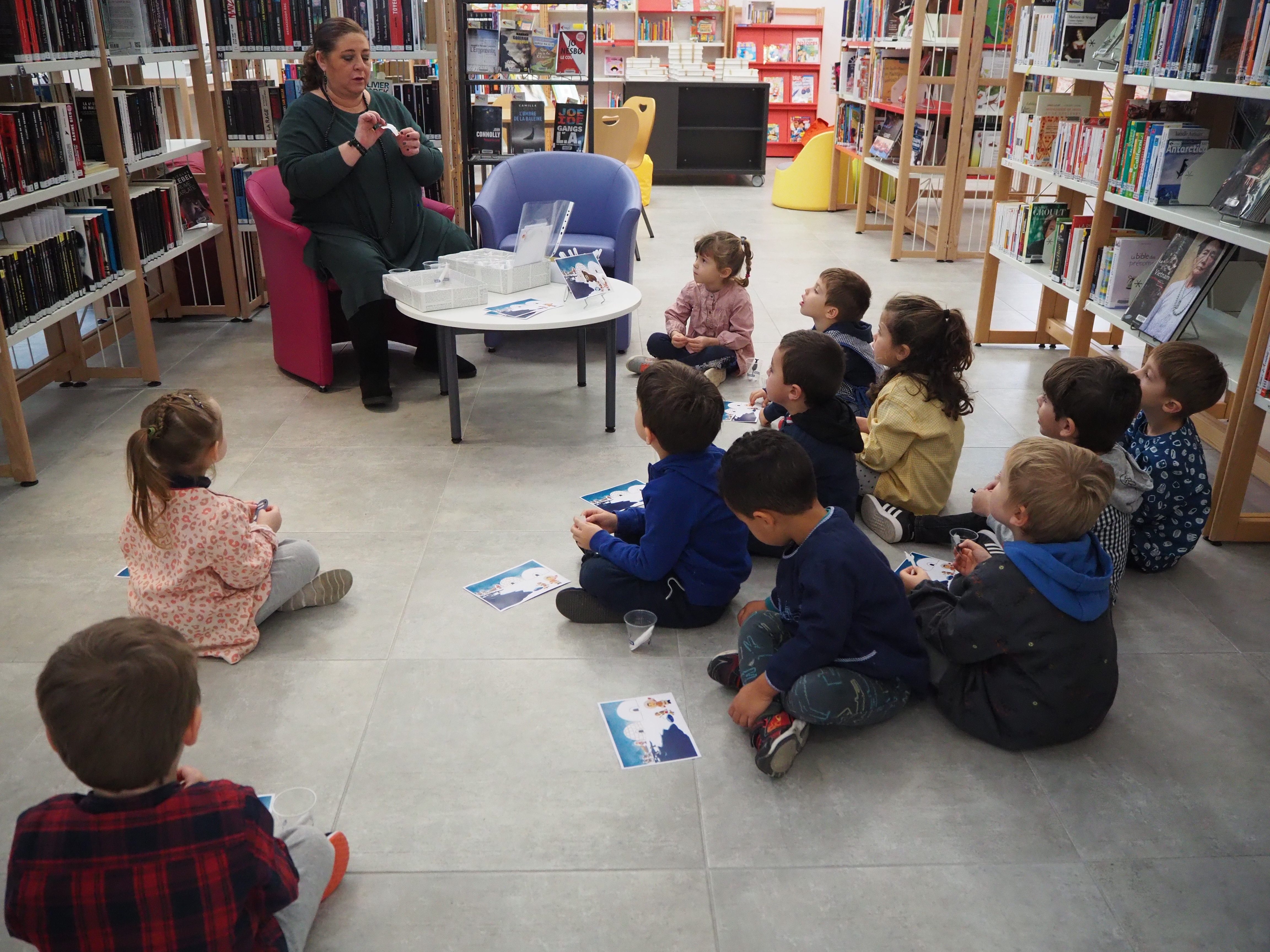 Ce jeudi matin, deux classes ont inauguré ces « ateliers ». Les élèves et leur professeur ainsi que l’agent Atsem ont été accueillis par la directrice Gaëlle et son assistante Nathalie (qui ont magnifiquement décoré la médiathèque pour la circonstance, en reproduisant notamment la banquise et un igloo).