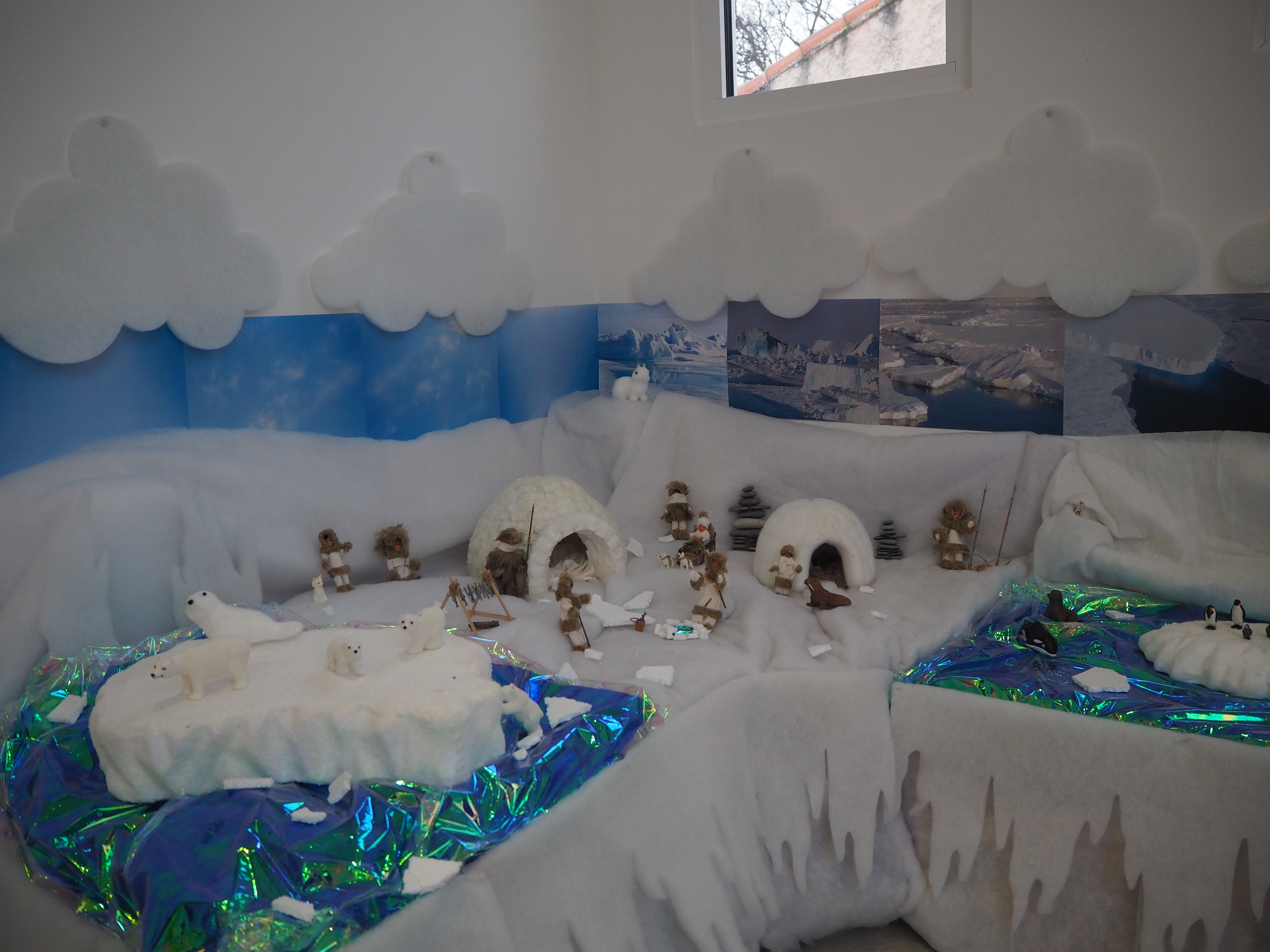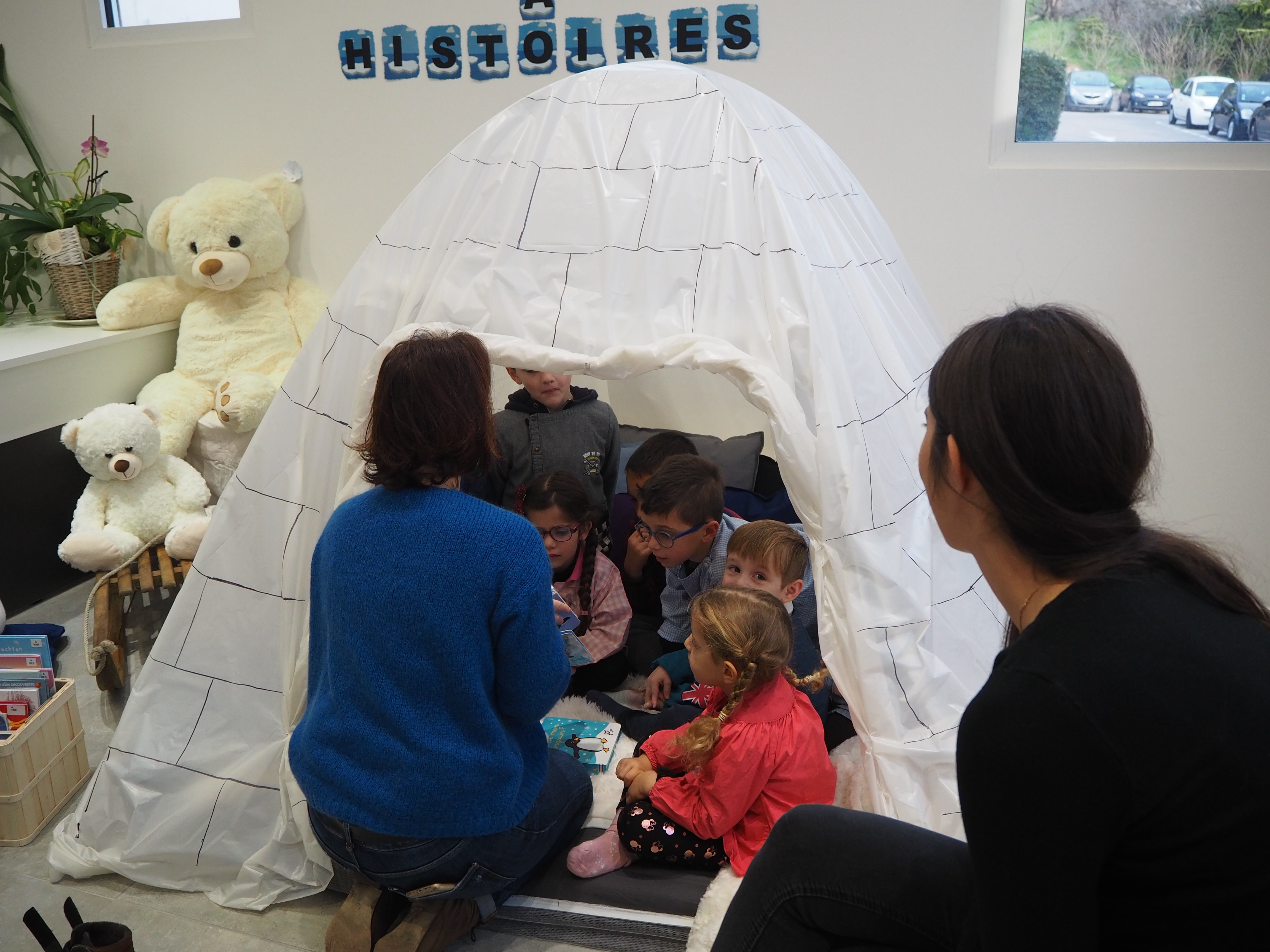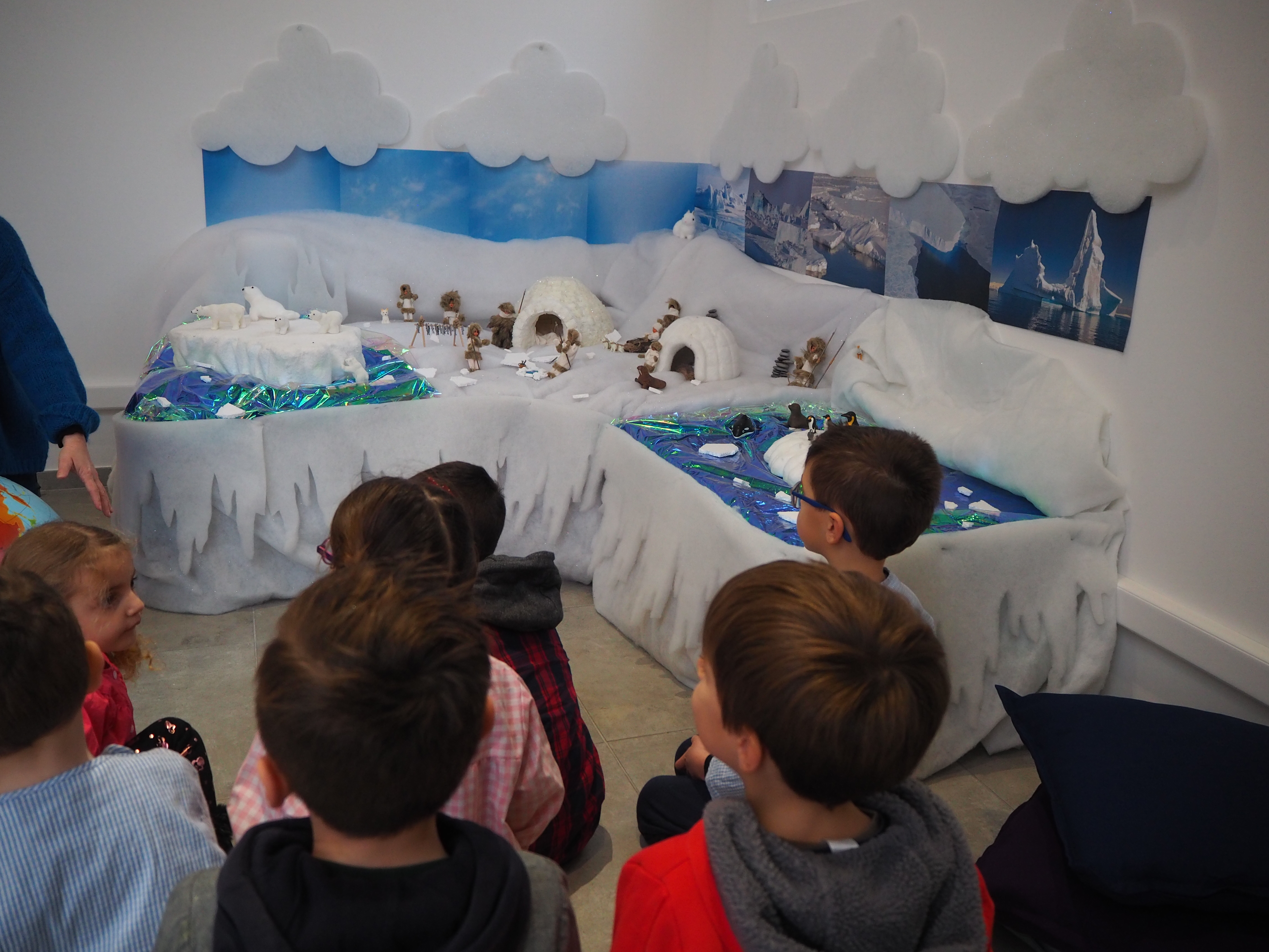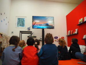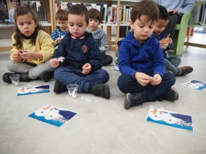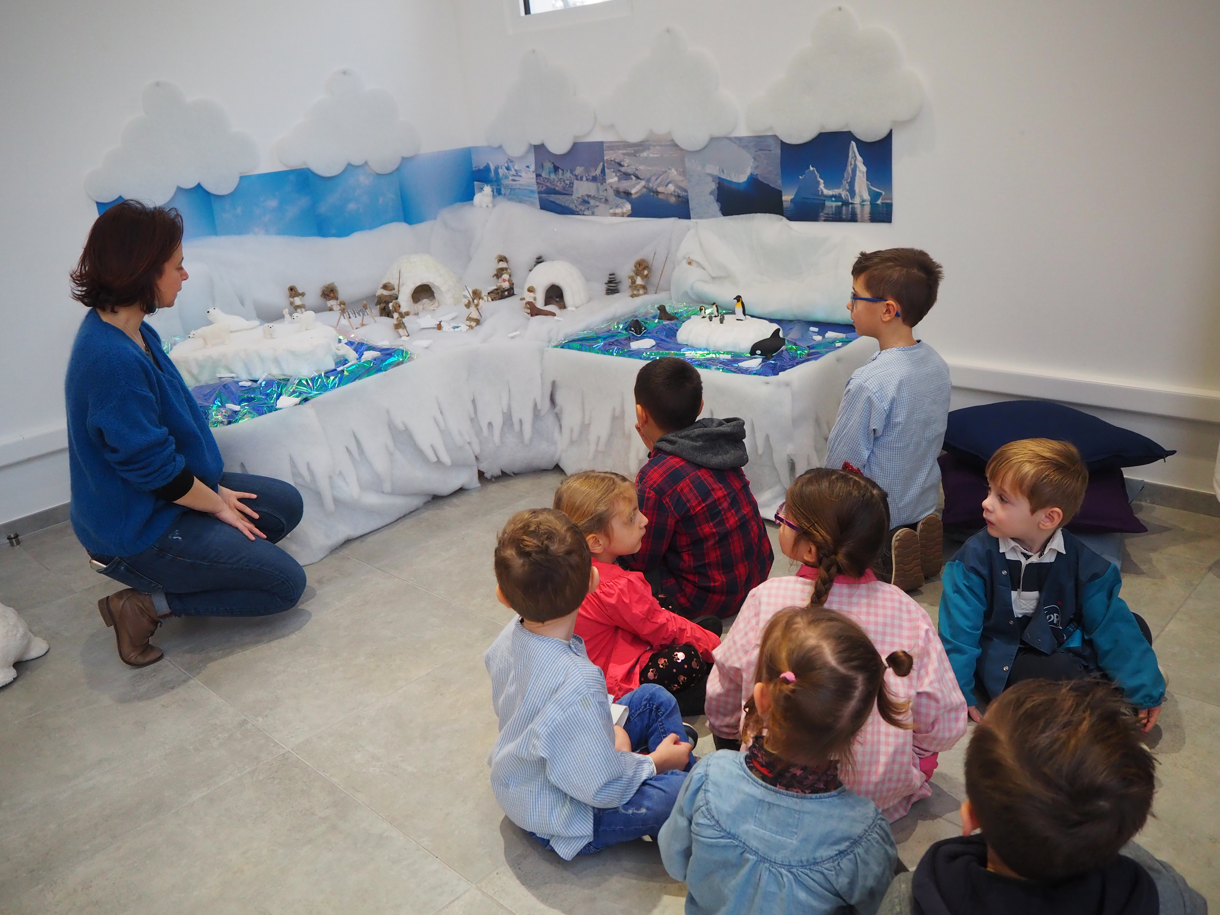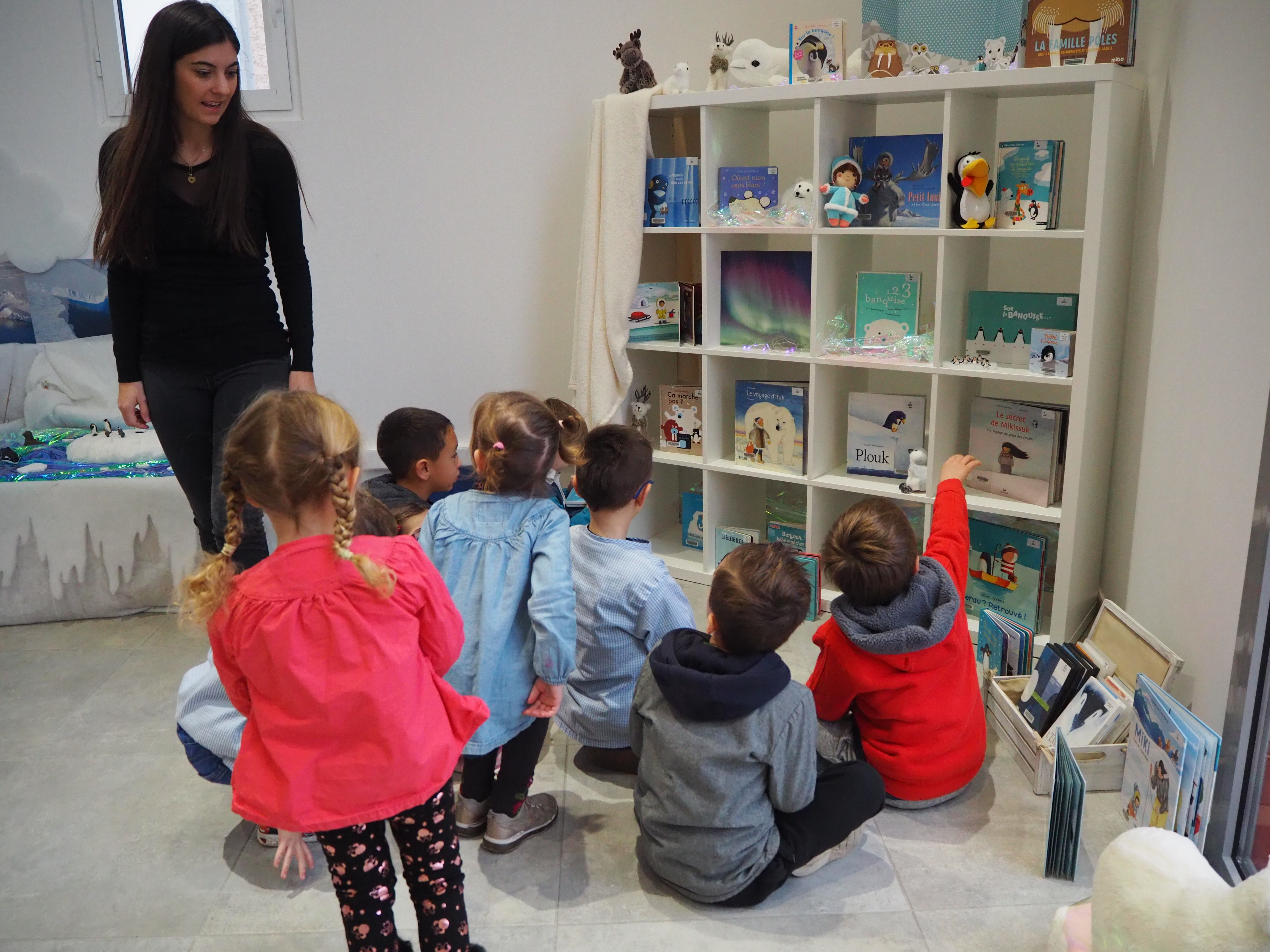 Dans un premier temps, l’enseignant a fait découvrir aux élèves la mise en scène sur la banquise aménagée spécialement à la médiathèque. Découverte du paysage et des animaux du pôle Nord.  Puis, une séance de lecture en lien avec la thématique animée par Gaëlle s’est tenue dans l’igloo, pour le plus grand plaisir des enfants.