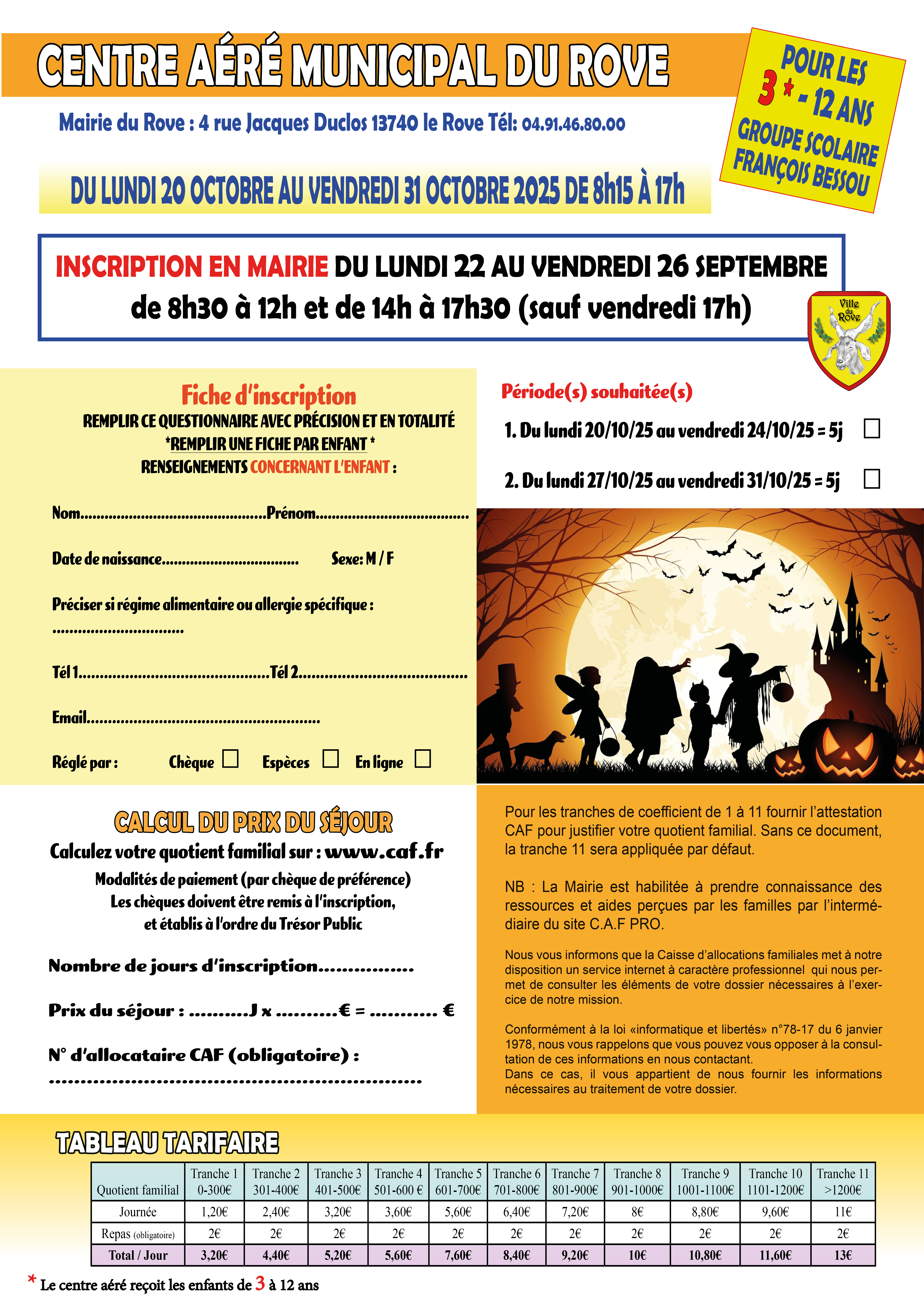 Centre Aéré pour les 3-12 ans du 20 au 31 octobre de 8h15 à 17h.