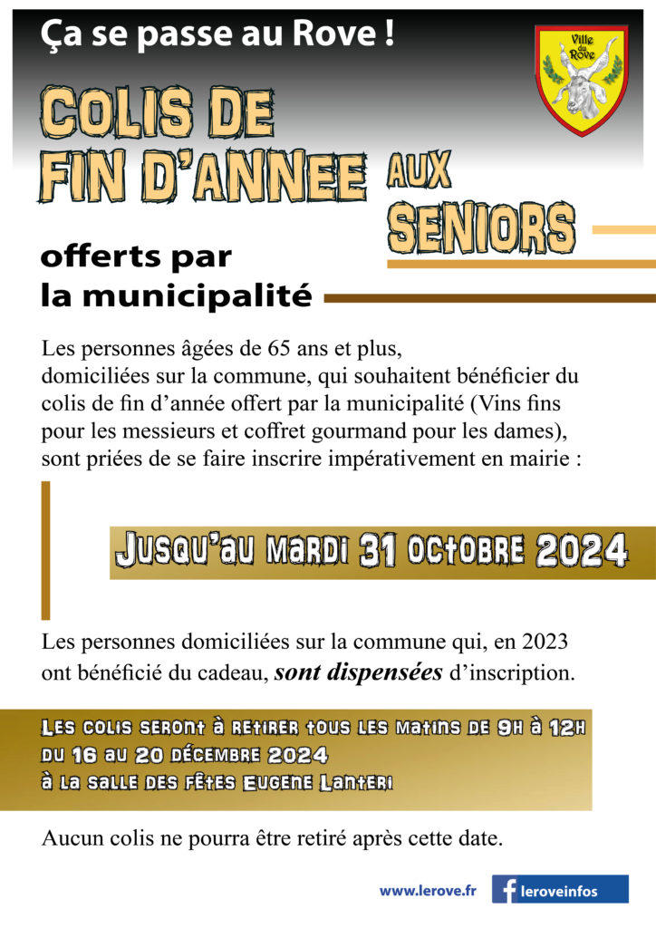 colis de fin d’année offert par la municipalité (Vins fins pour les messieurs et coffret gourmand pour les dames), sont priées de se faire inscrire impérativement en mairie :
