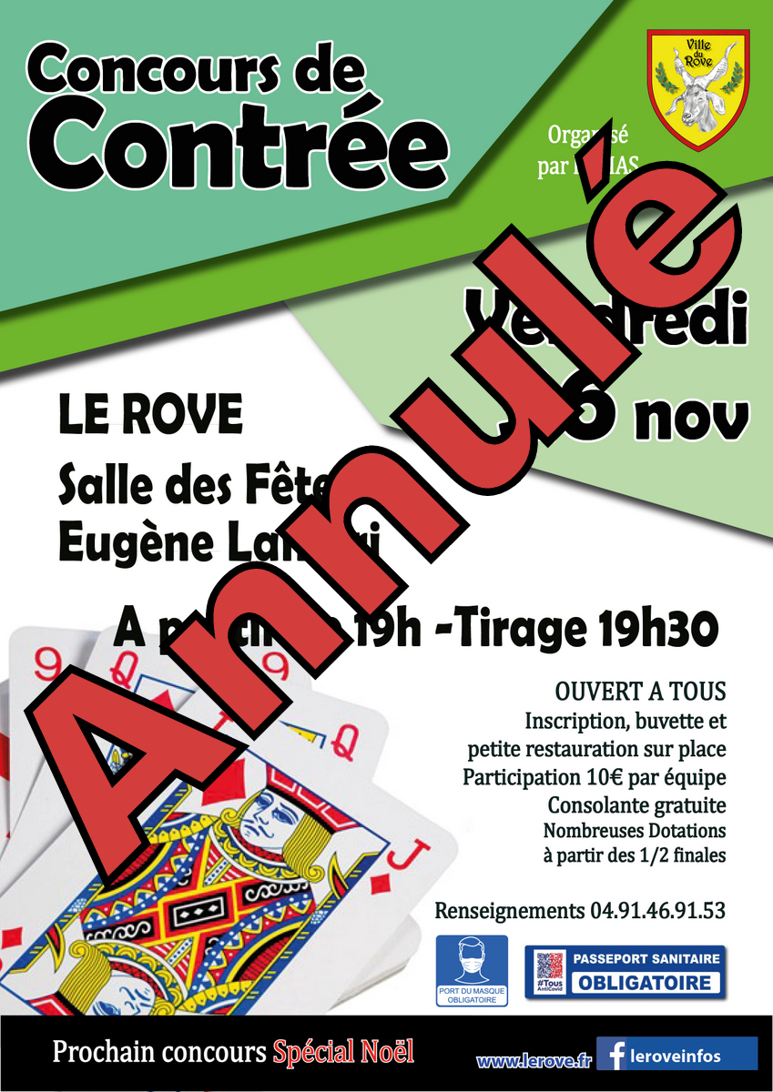 Les responsables de l’office municipal des affaires sociales informent que le concours de contrée prévu ce vendredi 26 novembre à la salle des fêtes est annulé. Nous vous informerons de la date du prochain concours dès connaissance.