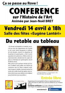 La première conférence se tiendra le vendredi 14 avril à 18h à la salle des fêtes du Rove.