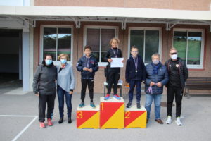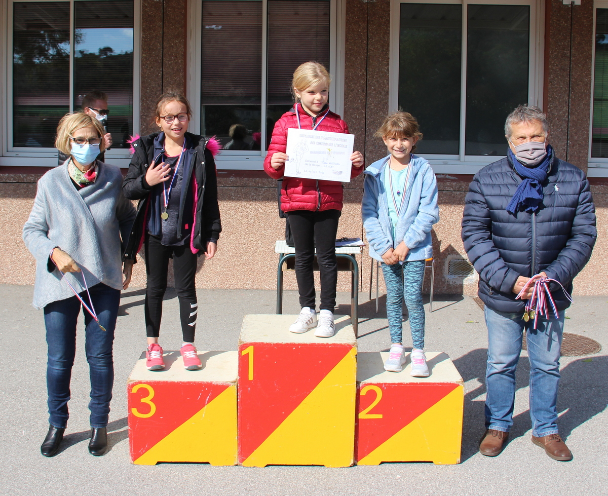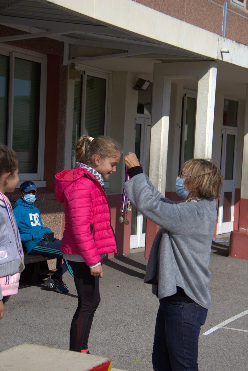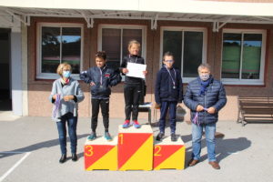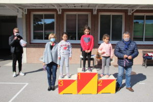 L’après-midi, dans la cour de l’école élémentaire aux côtés des enseignants et du directeur de l’école, Jean-François Bourdin, chaque élève ayant participé au cross a reçu une médaille offerte par la municipalité. Les trois premiers de chaque catégorie ont eu droit au podium et à un diplôme. Monsieur le Maire empêché (siégeant en conseil de métropole) était représenté par son premier adjoint délégué aux sports, Paul Sabatino et son adjointe déléguée aux écoles, Chantal Giraud pour remettre les récompenses.