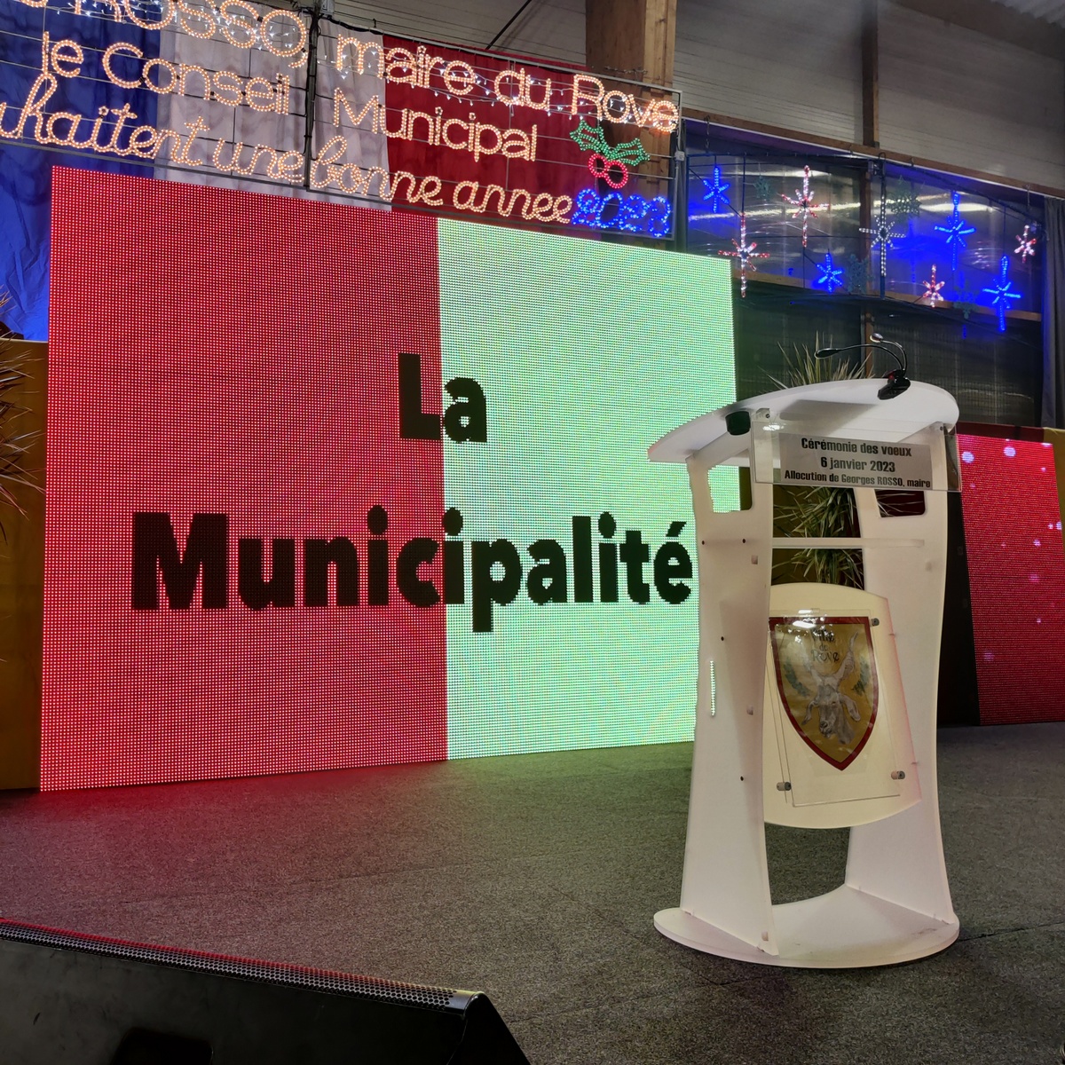 Le premier magistrat, Georges ROSSO, a adressé ses voeux à la population dans une allocution chaleureusement applaudie (à retrouver ci-dessous ). Il était entouré sur la scène des élus du conseil municipal, des responsables associatifs mais aussi du Sénateur des B-d-R, Jérémy BACCHI et de la conseillère régionale, Patricia COLLIN, représentant le président de la région Renaud MUSELIER.