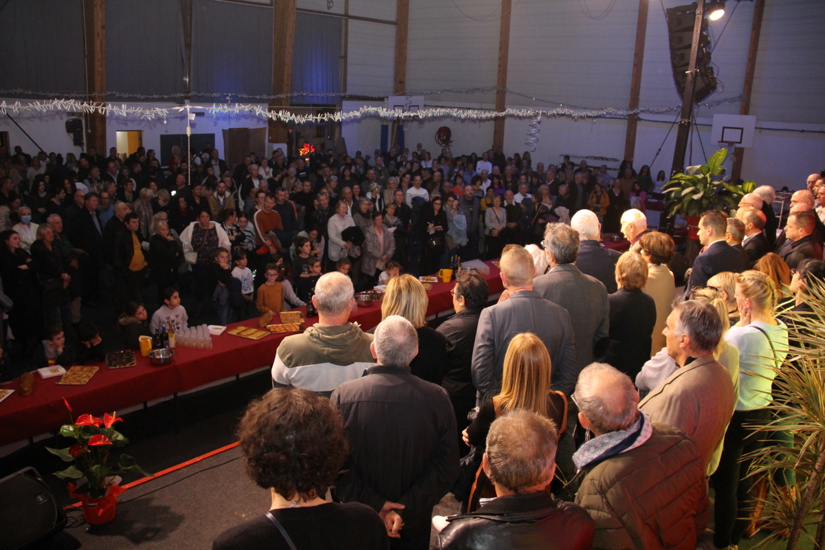 La joie de se retrouver était manifeste ce vendredi soir au gymnase où étaient rassemblées plusieurs centaines de personnes à l'occasion de la cérémonie des vœux du Maire. Ce grand évènement annuel est l'occasion de se souhaiter les vœux entre amis, voisins, habitants, élus et acteurs associatifs, entreprises et commerçants de la commune. Le succès était au rendez-vous.