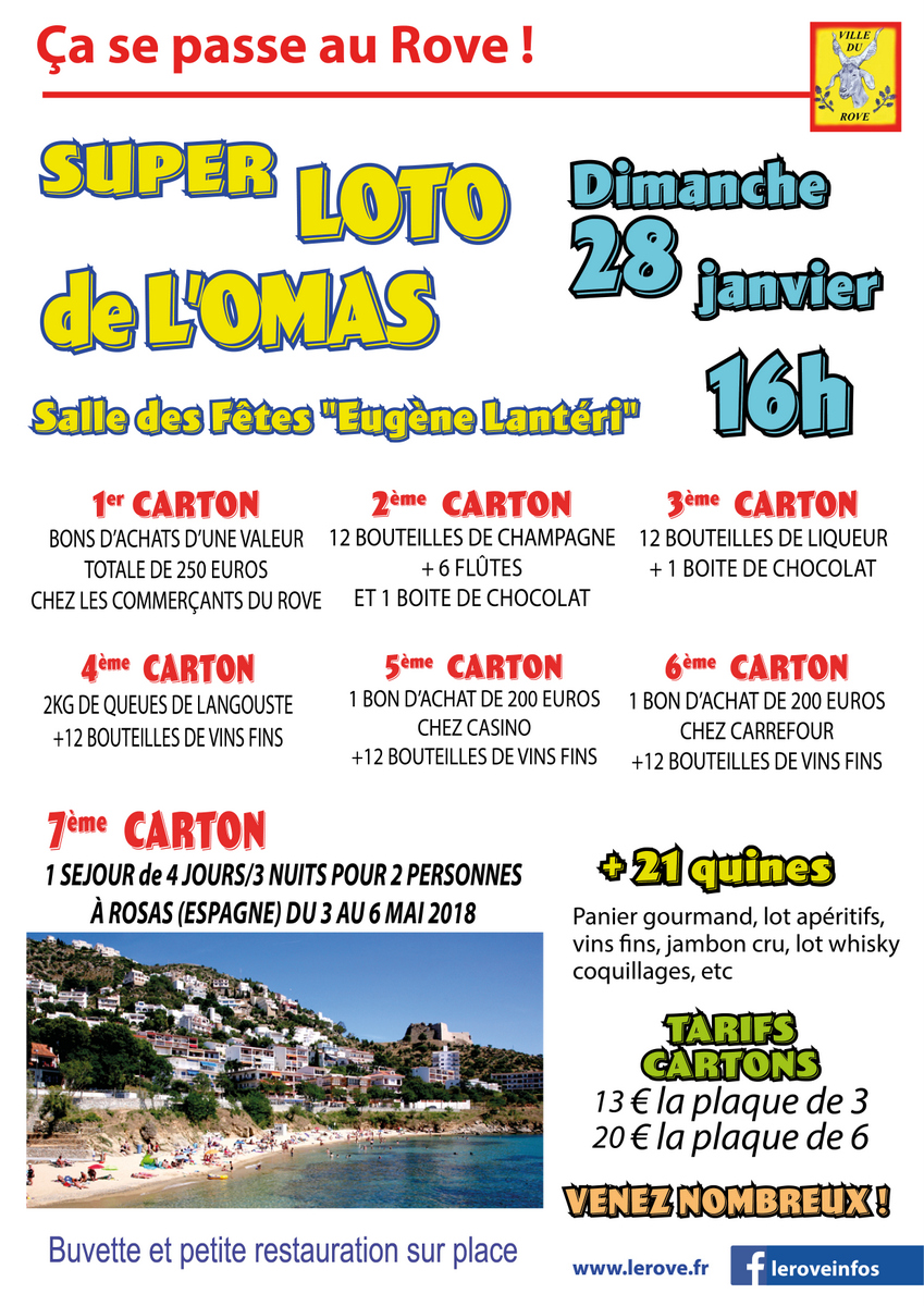 Le 28 janvier, la salle des fêtes accueillera le super loto annuel où de nombreux lots sont à gagner dont 1 séjour en Espagne de 4 jours et 3 nuits.
