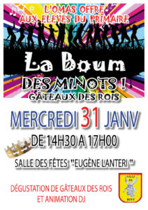 Le 31 janvier, ce sont près de 300 enfants de l’école élémentaire qui sont invités pour le traditionnel après-midi récréatif. Au programme, boum animée par DJ’Kris et dégustation de la galette des rois au goûter. Un moment toujours très attendu par les enfants et qui se perpétue depuis plus de 25 ans.