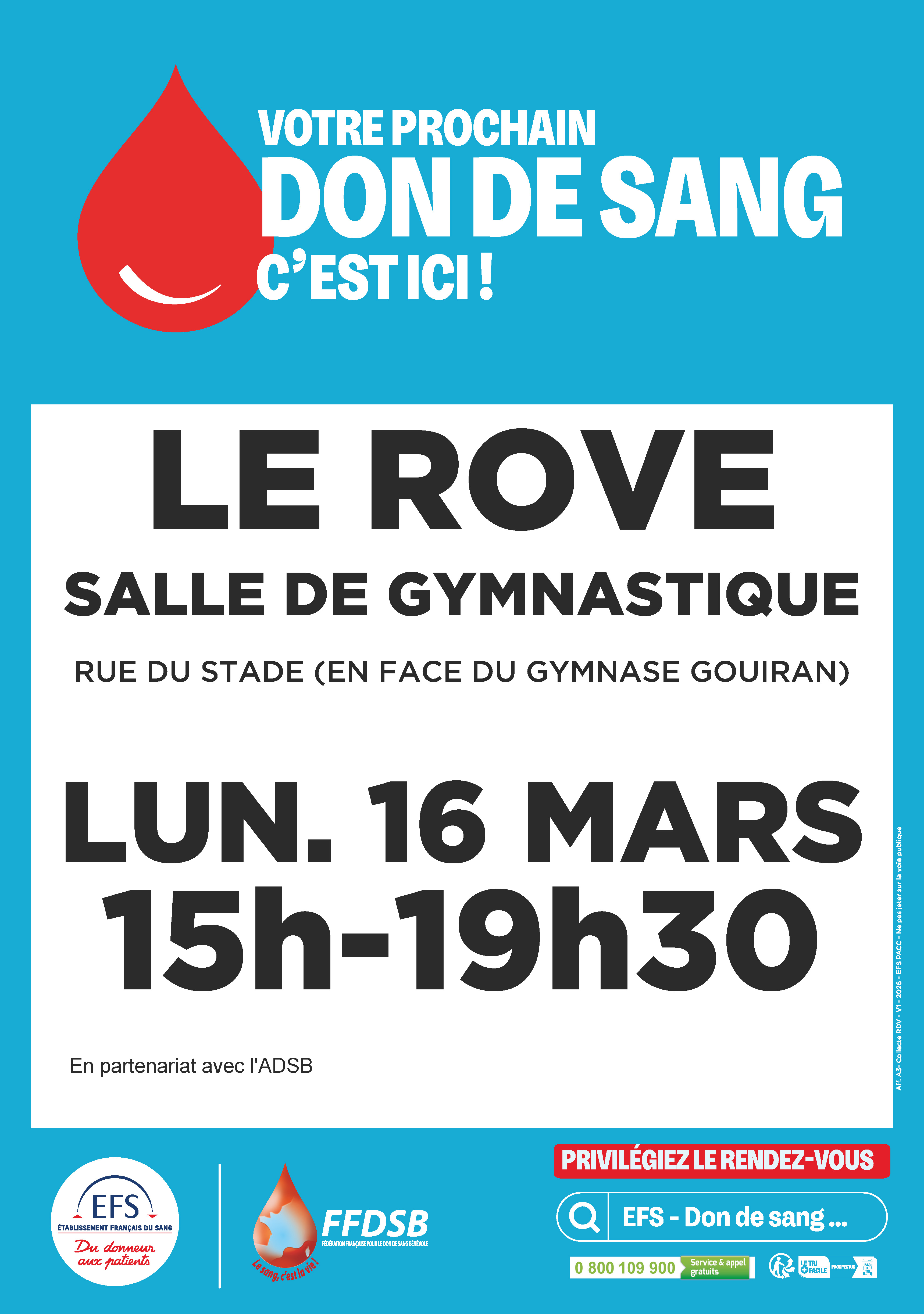 Assurez-vous de pouvoir donner le jour J ! Testez votre éligibilité au don en quelques minutes sur https://dondesang.efs.sante.fr/puis-je-donner