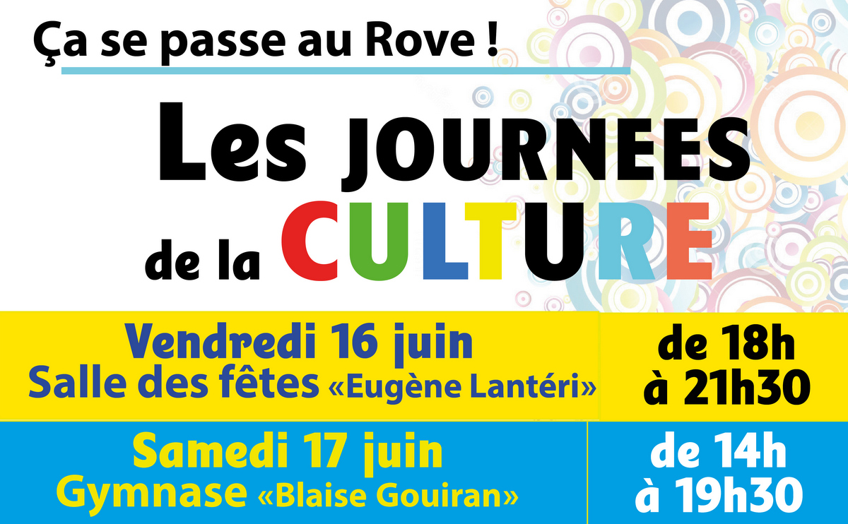 Après l'audition de l'école municipale de musique (le 3 juin dernier) et avant le spectacle de fin d'année de l'école municipale de danse (le 21 juin), le Rove met à l'honneur les talents culturels de la commune dans le cadre des journées annuelles de la culture. Conférence, Chant, Théâtre, Expositions, Atelier, Rencontre rythmeront ces journées. Demandez le programme ...