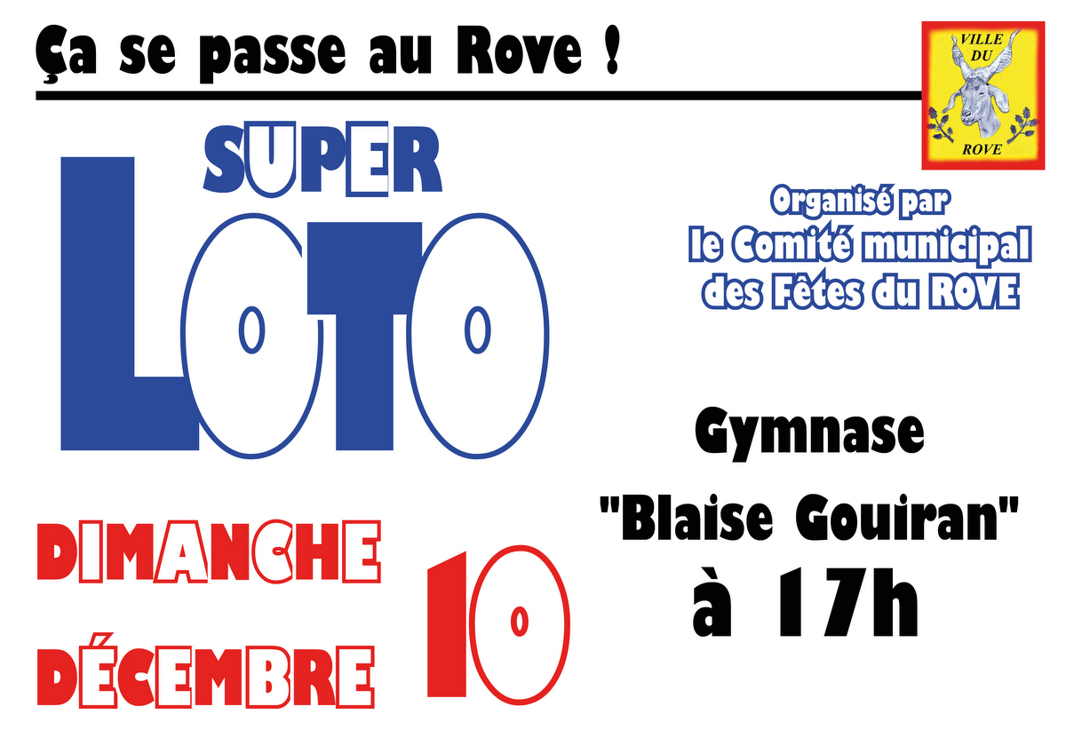C'est Noël avant l'heure ce dimanche 10 décembre avec le super LOTO annuel organisé par le comité des fêtes à 17h au gymnase municipal Blaise Gouiran. Venez nombreuses et nombreux tenter votre chance pour gagner des supers lots. Pour rappel, tous les bénéfices récoltés vont servir à organiser des manifestations, activités, initiatives et sorties en faveur de la population et ...