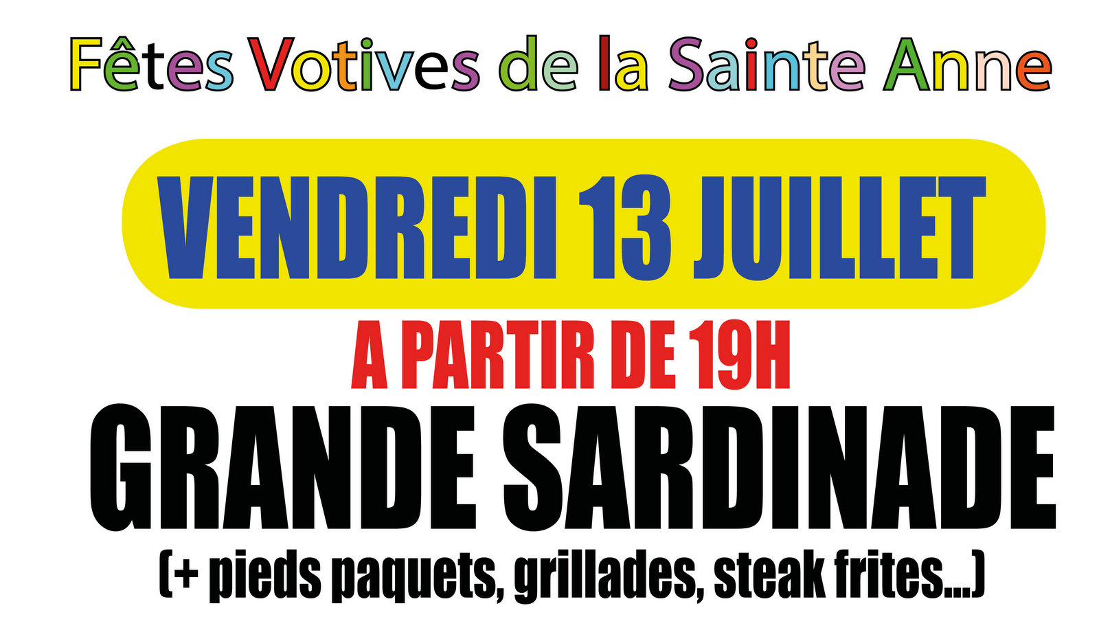 Ce vendredi 13 juillet démarrent au Rove les fêtes votives de la Sainte Anne avec la SARDINADE et le BAL GRATUIT. Un évènement festif et gourmand à ne pas manquer ! On vous attends nombreuses et nombreux à partir de 19h.