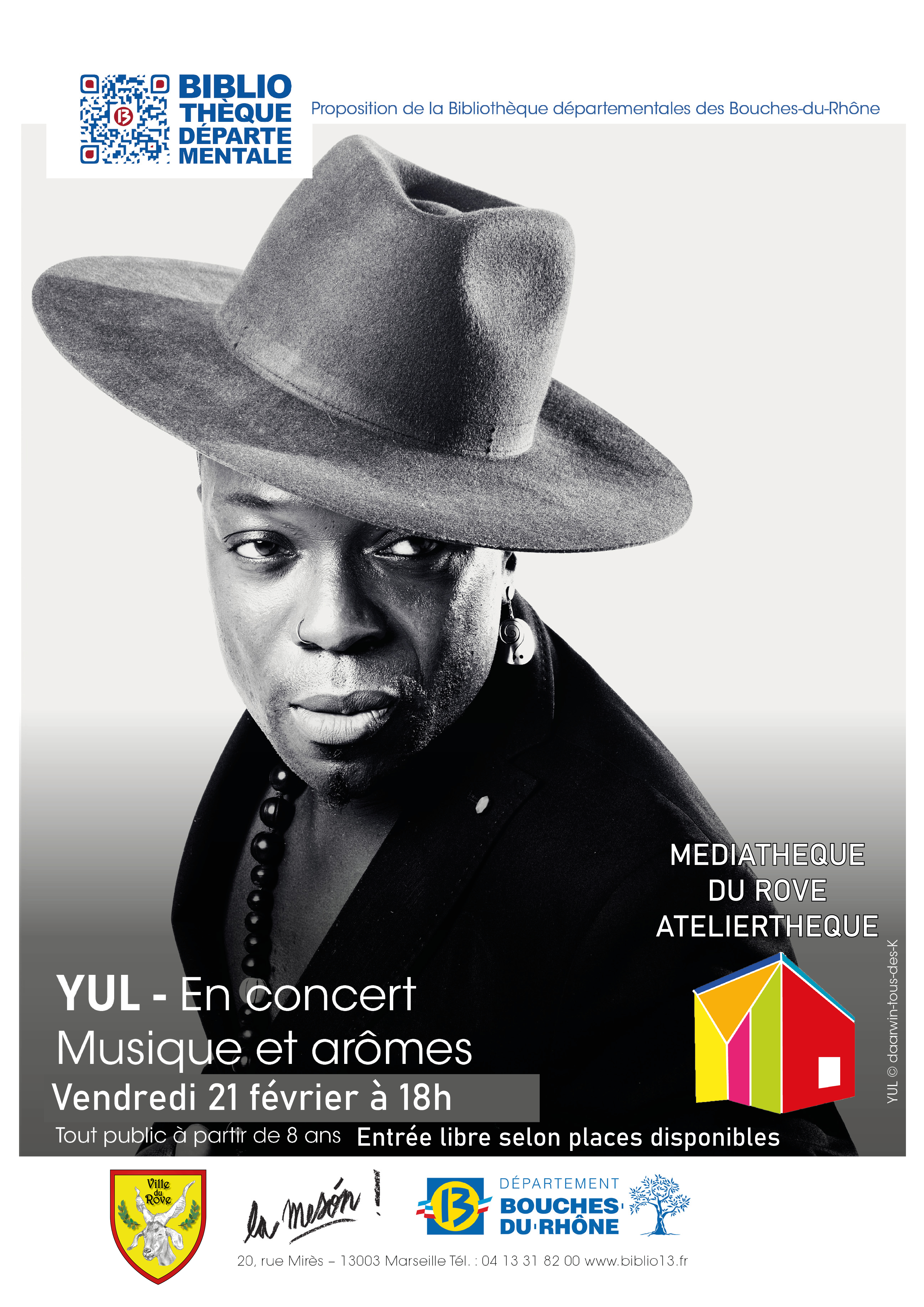 YUL Solo - Musique et arômes Vendredi 21 février 2020, 18h Atelierthèque – Médiathèque municipale René Blanc, Entrée libre - Tout public à partir de 8 ans. Selon les places disponibles. La Municipalité du Rove, la Bibliothèque départementale et La Mesón vous invitent à découvrir YUL en solo, un spectacle passerelle entre deux continents qui mêle enchantement des oreilles et ...
