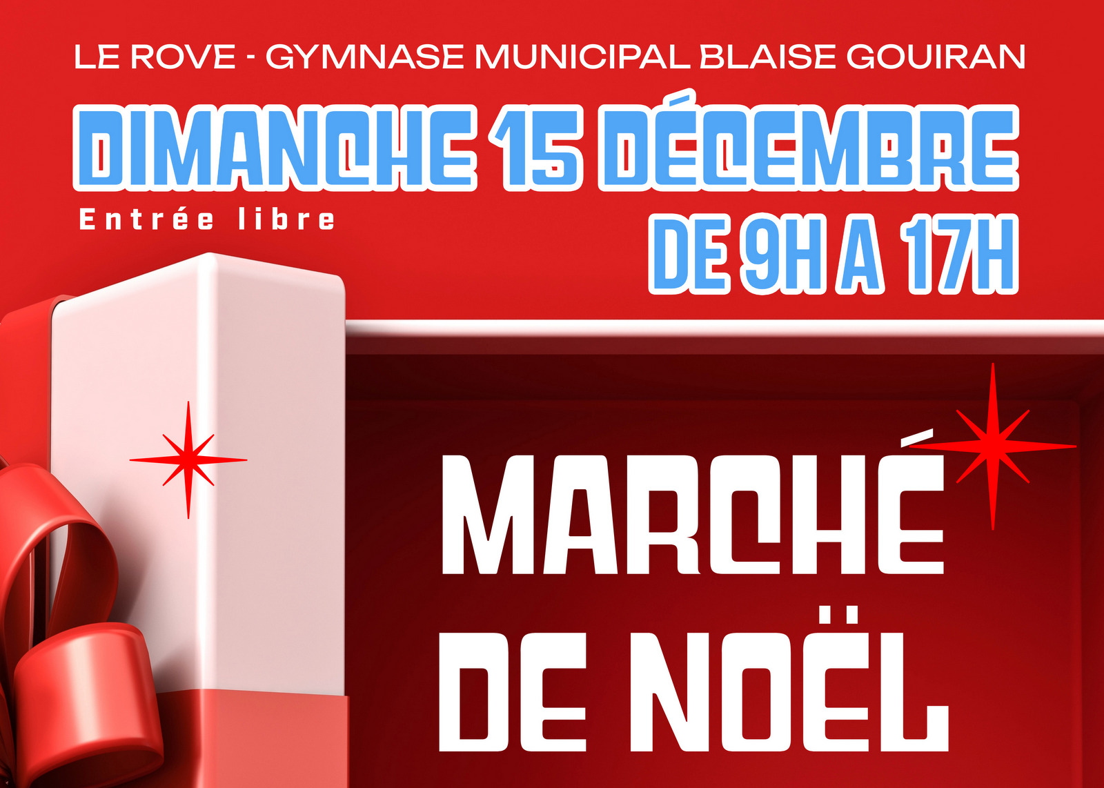 40 artistes et artisans du Rove exposeront leurs œuvres uniques et originales au marché de Noël le dimanche 15 décembre dans l'enceinte du gymnase de 9h à 17h. Parmi les nombreux stands présentés, le public pourra retrouver un large choix de produits variés pour faire ses emplettes de noël : romans, céramiques, jouets, figurines, peintures, décoration de noël, couture, objets ...