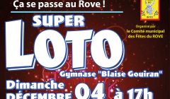 Le comité municipal des fêtes du Rove organise son super loto annuel le dimanche 4 décembre à 17h au gymnase municipal "Blaise Gouiran". 21 quines et 7 cartons pleins à gagner. Venez nombreux