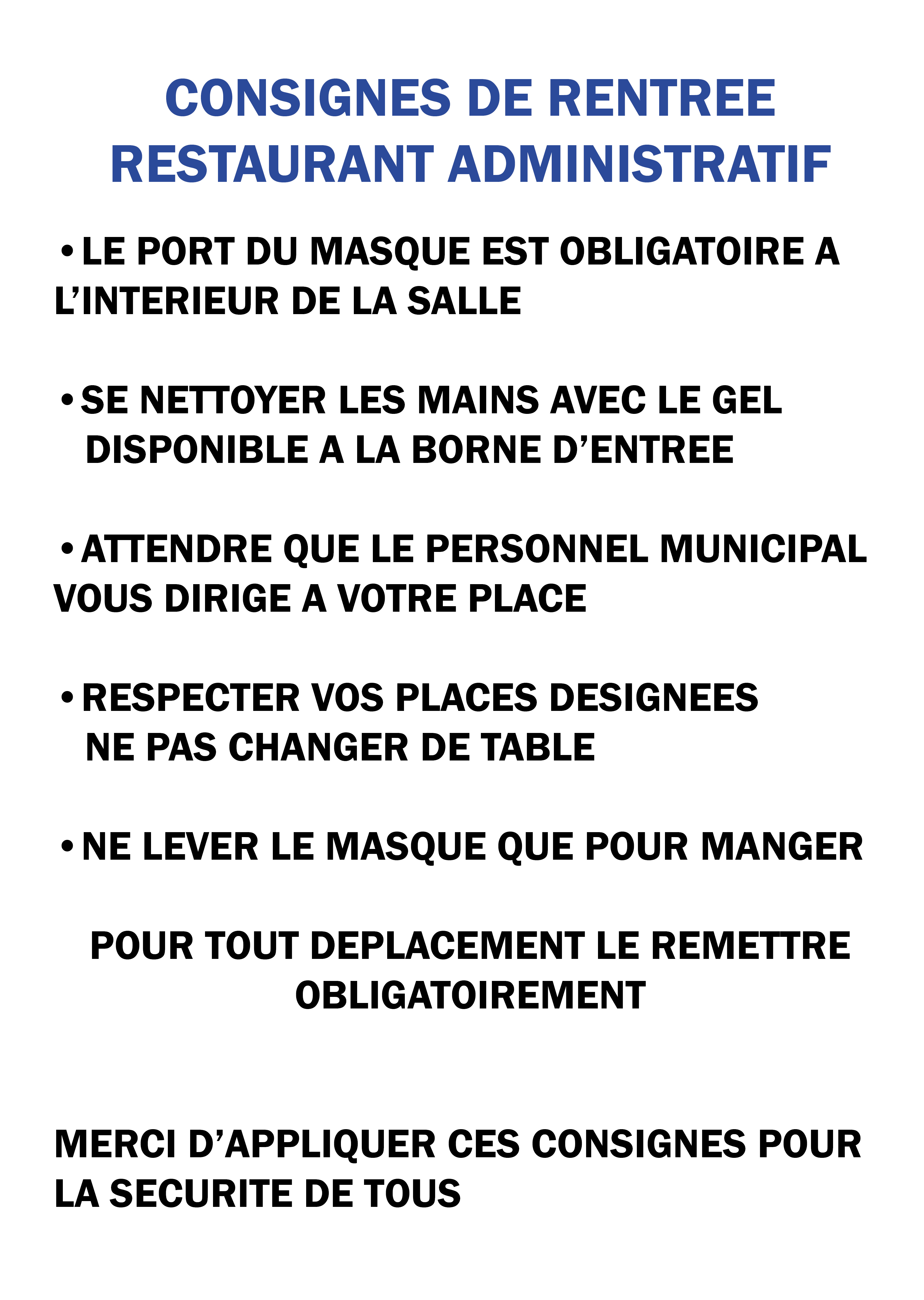 Le restaurant administratif ouvrira ses portes LUNDI 7 SEPTEMBRE 2020. Toutes les mesures sanitaires seront prises dans la salle du restaurant.