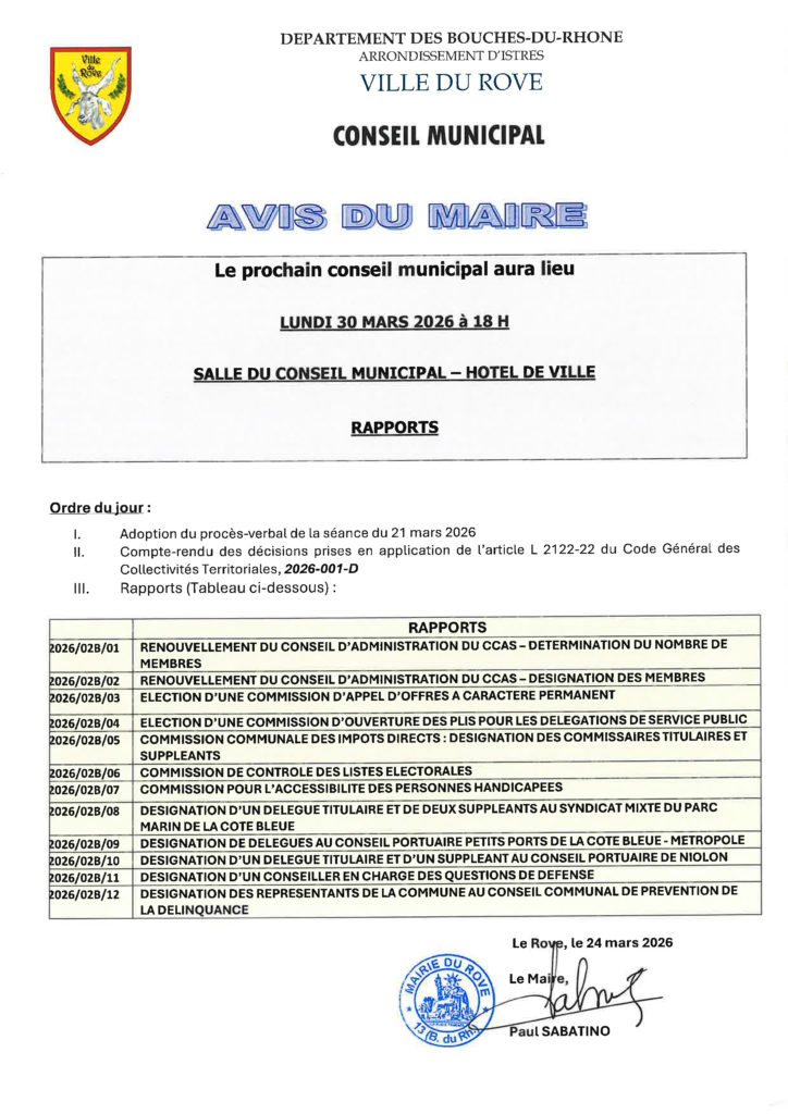 Le prochain conseil municipal aura lieu lundi 30 mars 2026 à 18h / Salle du conseil municipal en mairie