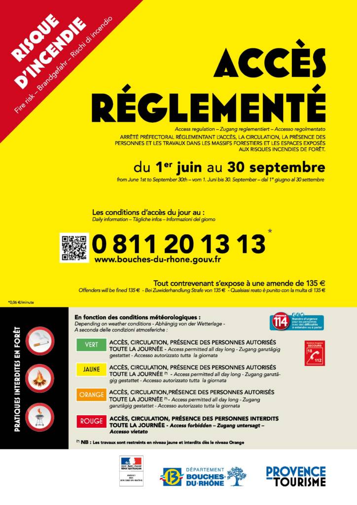 Pendant cette période, l’accessibilité aux massifs est déterminée quotidiennement en fonction de la météorologie et de la sécheresse. Elle est cartographiée et rendue publique pour chaque massif et pour l’ensemble des communes concernées, vers 18 heures pour le lendemain, sur le site internet de la préfecture.