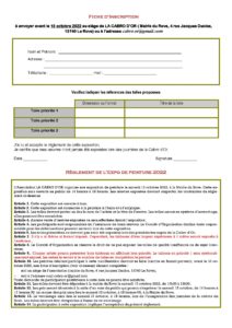 > Retrouvez le règlement et la fiche d'inscription du concours en cliquant sur le lien suivant : reglement et fiche inscription concours peintures2022