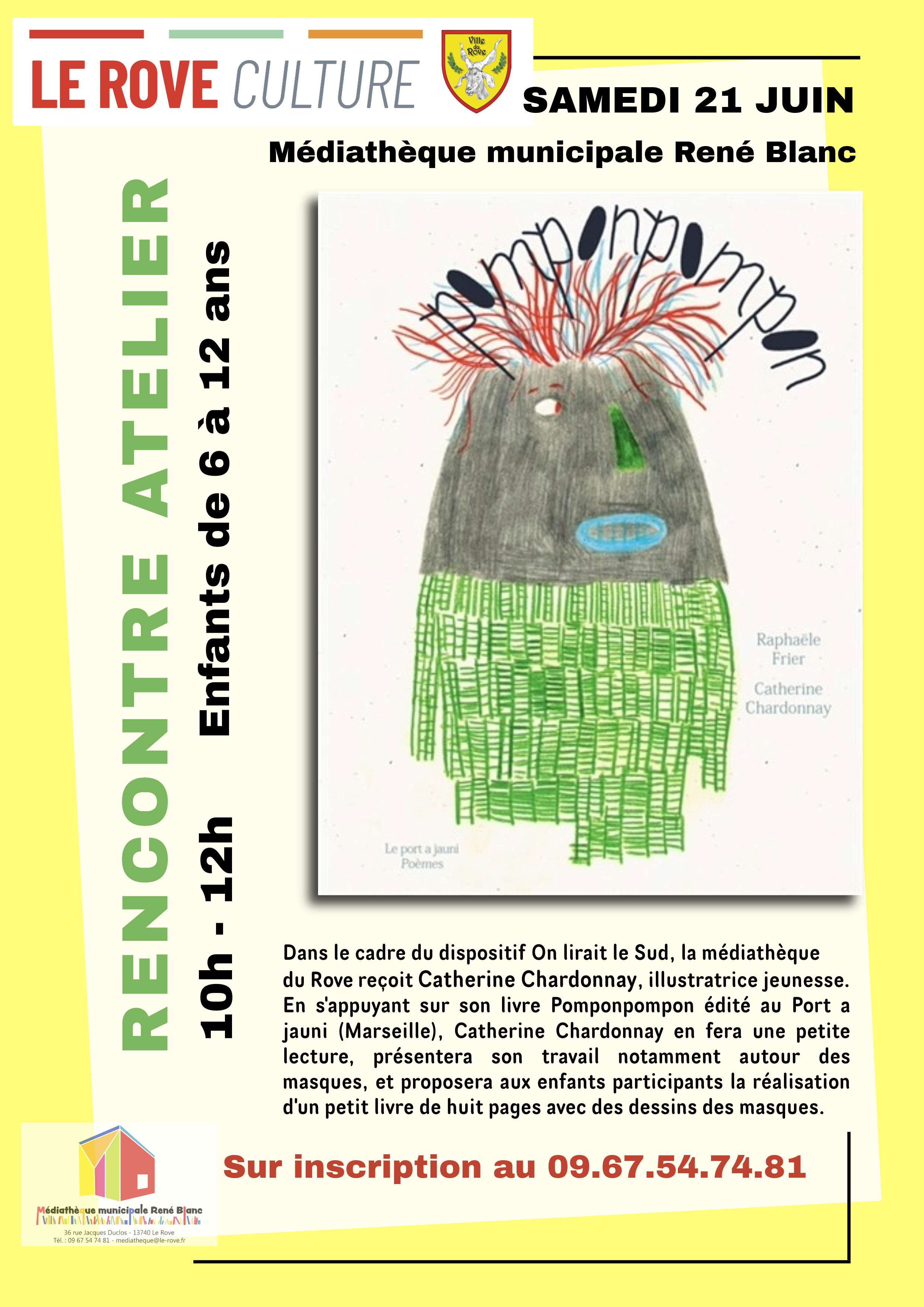 > Le matin de 10h à 12h à la médiathèque municipale avec une rencontre atelier avec l'illustratrice Catherine Chardonnay. Jeune public 6-12 ans, sur réservation.