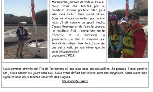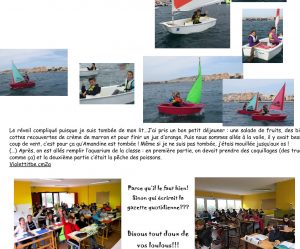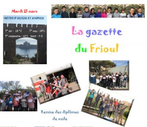 Retrouvez au quotidien "la gazette du Frioul" préparée par les enseignants et les élèves, retraçant le journal de bord de la classe de voile.
