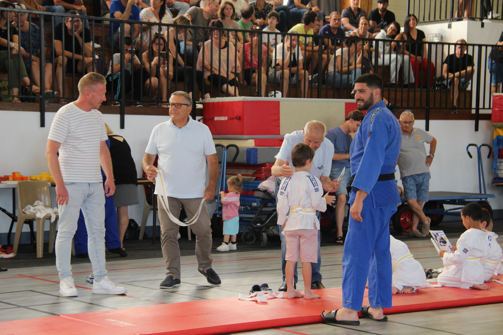 Le 15 juin dernier, le maire Georges Rosso, accompagné de son premier adjoint, délégué aux sports et à la jeunesse, M. Paul Sabatino, ainsi que de M. David Guevara, conseiller municipal, était présent dans l'enceinte du gymnase municipal pour remettre les diplômes et le passage des ceintures des 140 adhérents du club LE ROVE JUDO devant de nombreux parents.