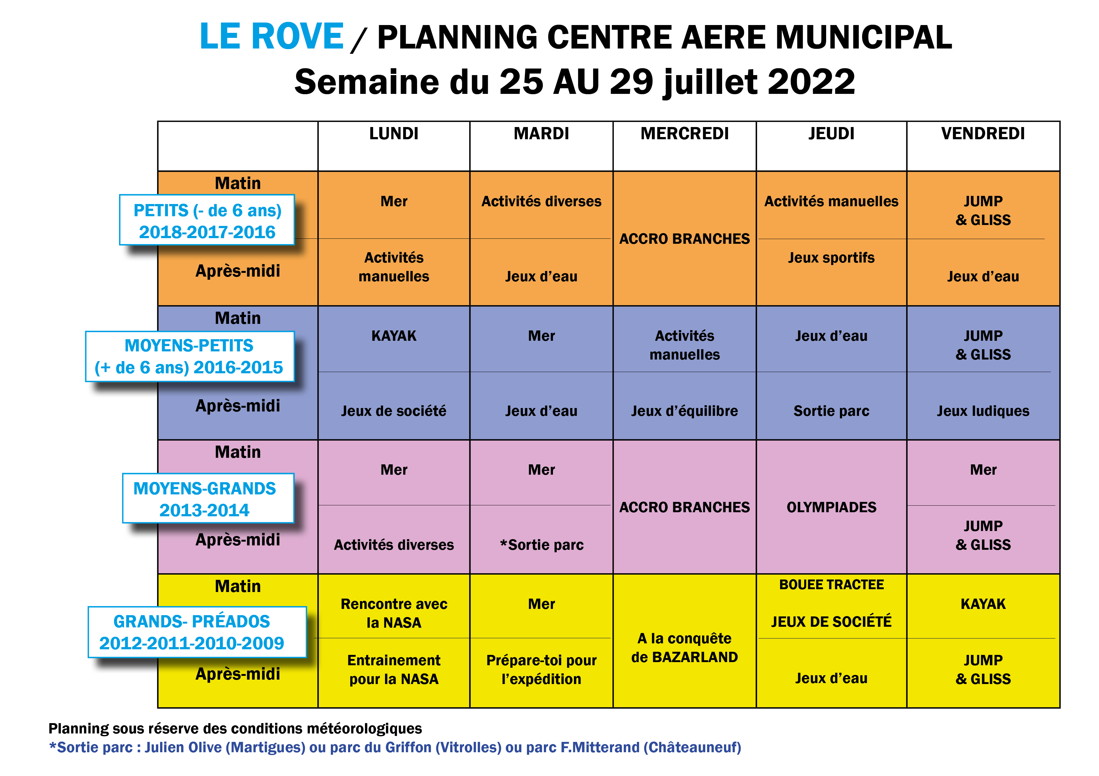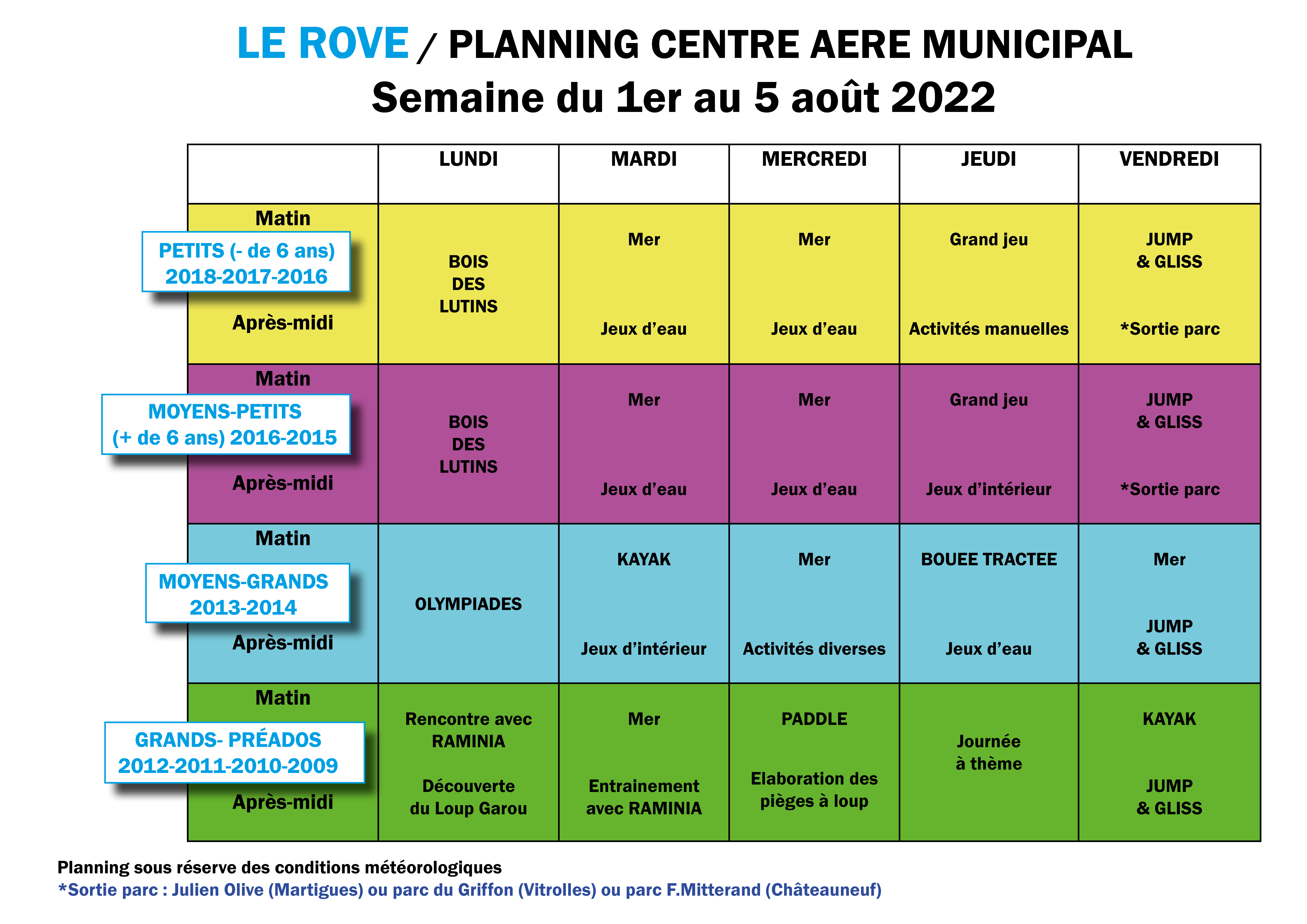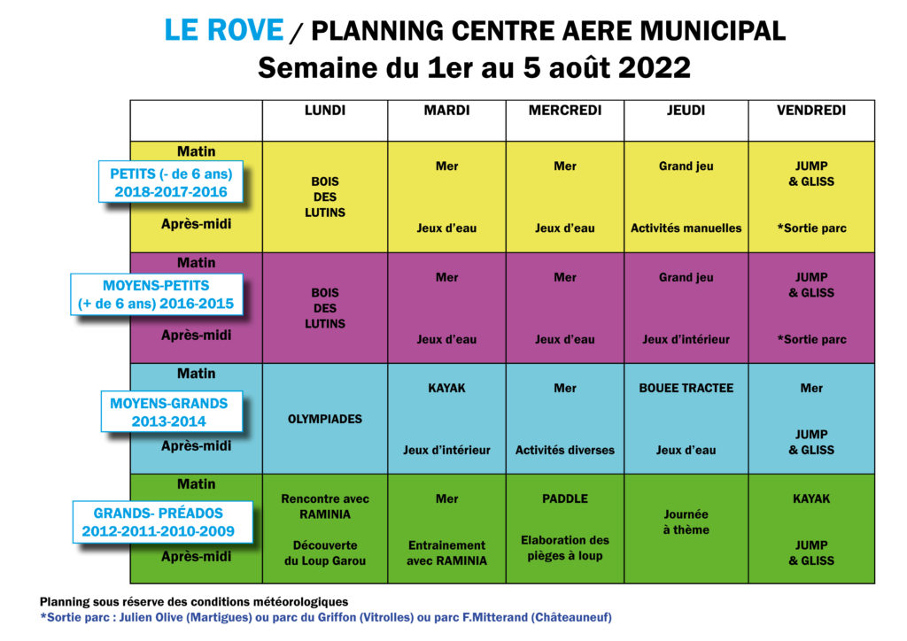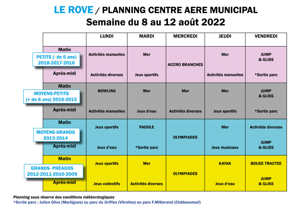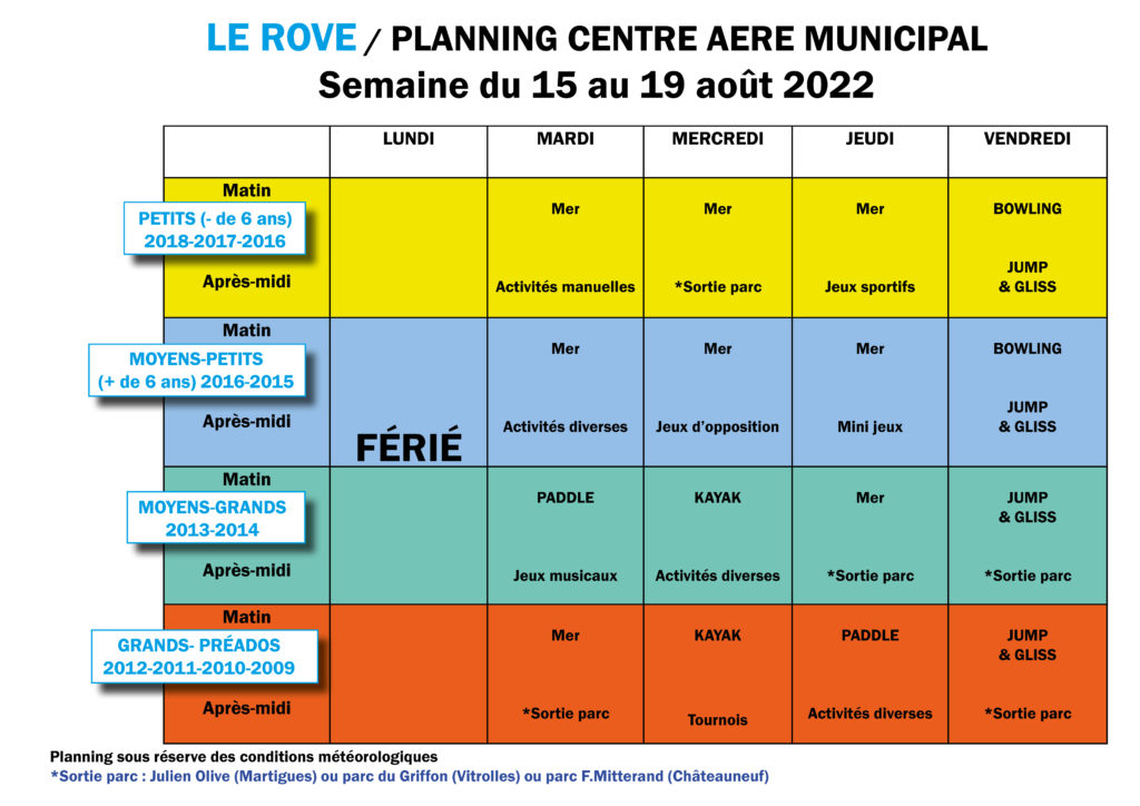 > Retrouvez ci-après les plannings des activités jusqu'au 19 août.