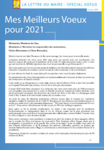 Vendredi dernier aurait dû se dérouler au gymnase la traditionnelle cérémonie des vœux de la municipalité à la population. Bien entendu, compte-tenu du contexte sanitaire, cela n’a pas été possible de l’organiser cette année, et c’est fort regrettable d’avoir été privé d’un évènement pareil, aussi chaleureux.