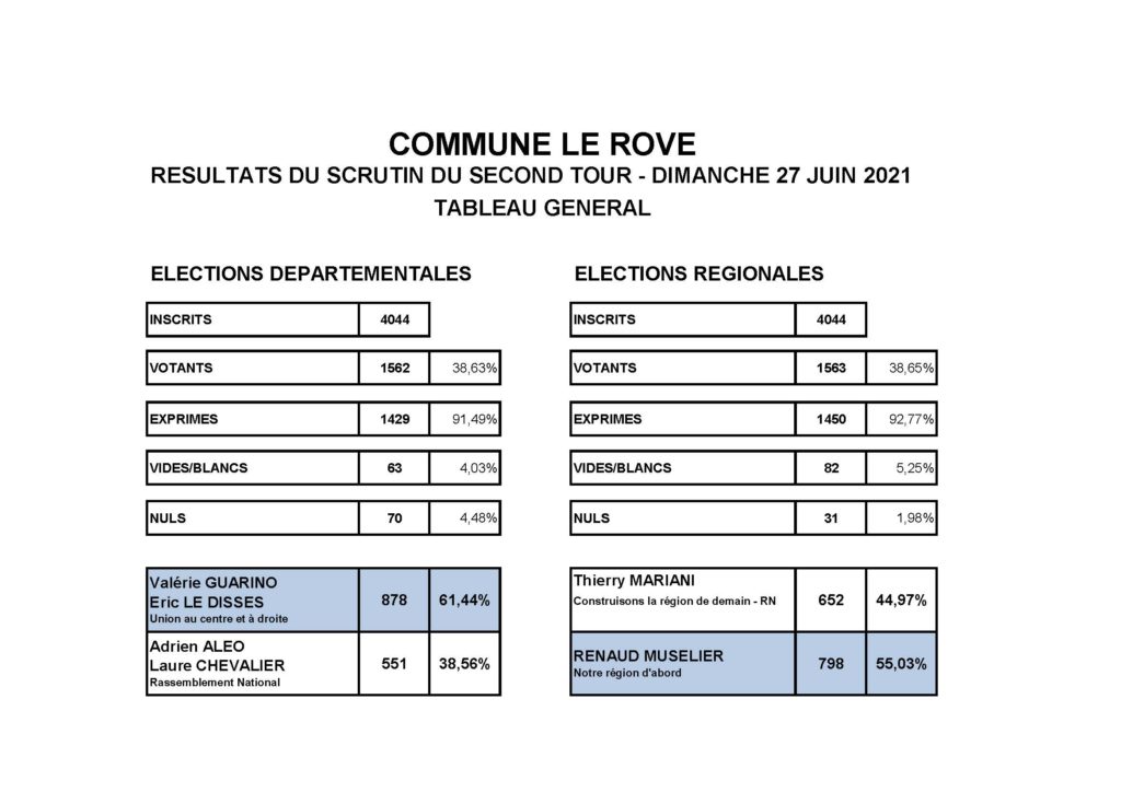 LE ROVE – Elections départementales et régionales – Les résultats des scrutins du 27 juin 2021