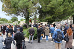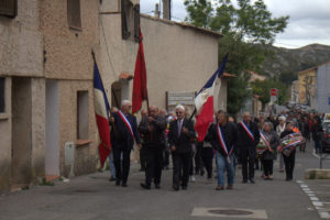 Rassemblé sur la Place de la Mairie, le cortège s'est rendu jusqu'au cimetière communal où se trouve le monument aux Morts.