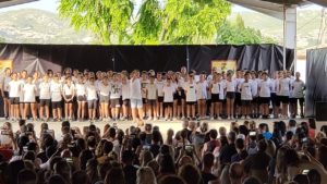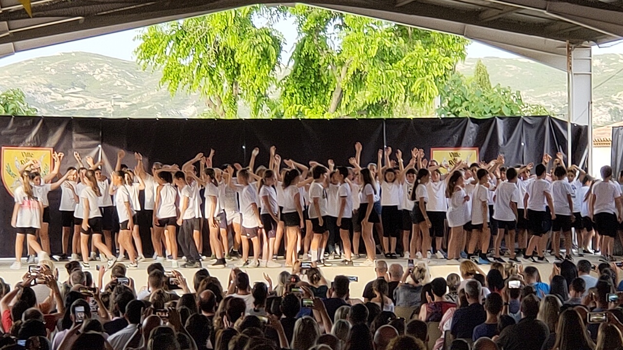 Les 337 élèves des 13 classes de l'école élémentaire du groupe scolaire communal François Bessou se sont produits mardi soir sur la scène de l'esplanade de la salle des fêtes à l'occasion du spectacle de fin d'année organisé par l'équipe pédagogique avec l'aide de la municipalité et la participation de parents d'élèves élus.