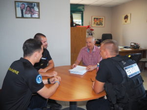 Monsieur le Maire a reçu ce vendredi après-midi en mairie trois des quatre gendarmes venus en renfort de gendarmerie saisonnier pour le mois d’août sur la commune du Rove. Cet escadron de gendarmerie en provenance de Belley (01) est basé au centre UCPA de NIOLON.