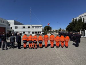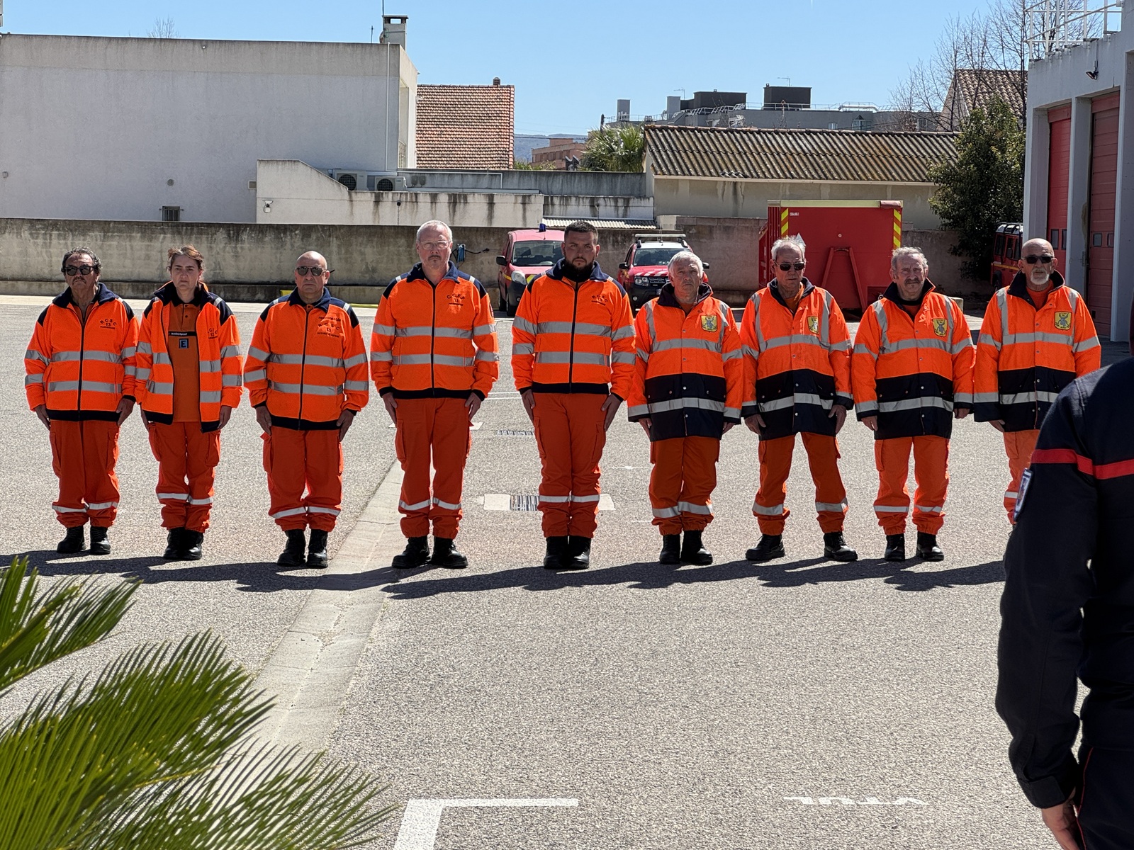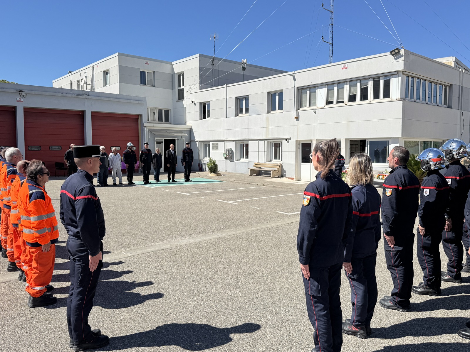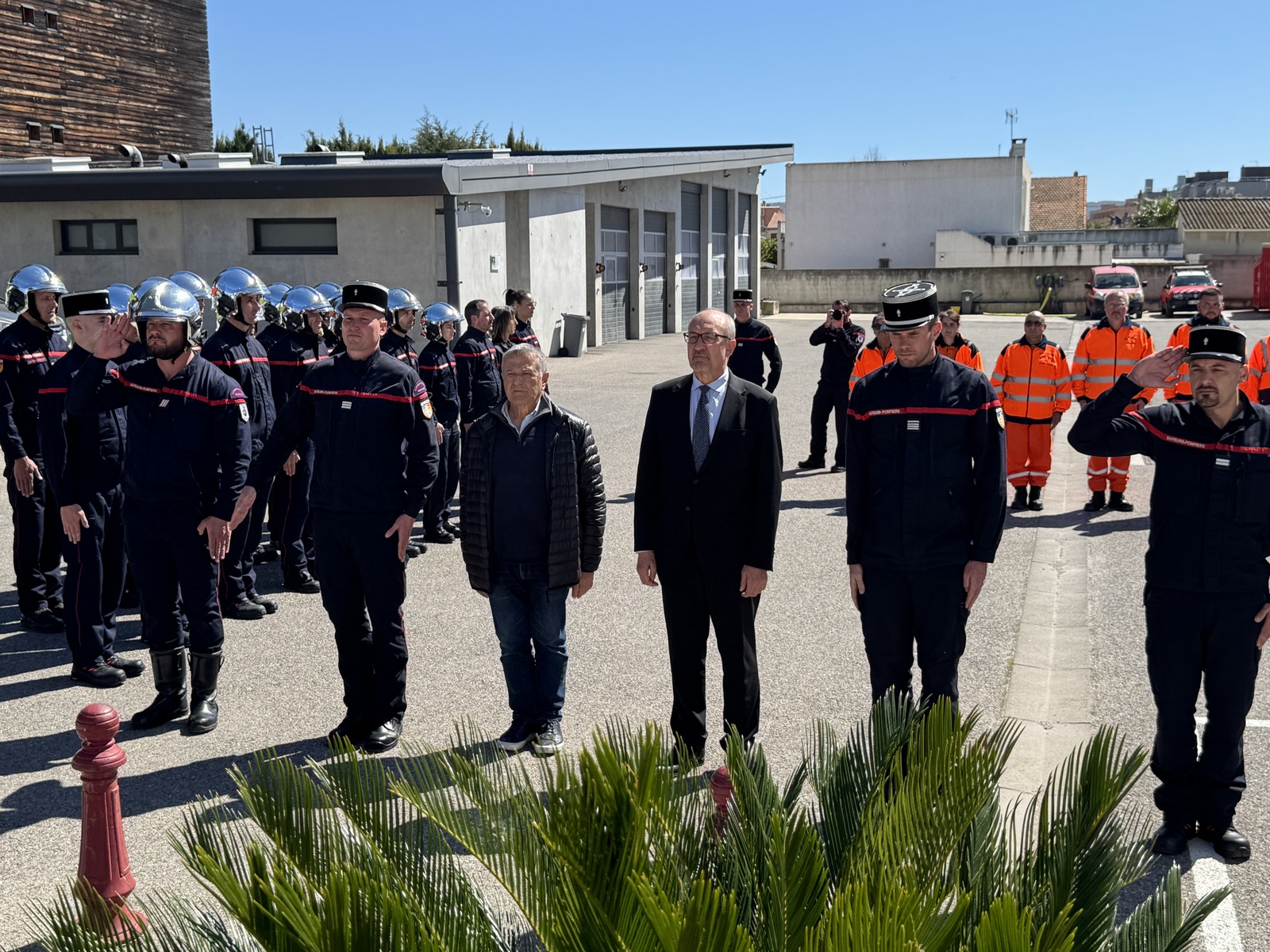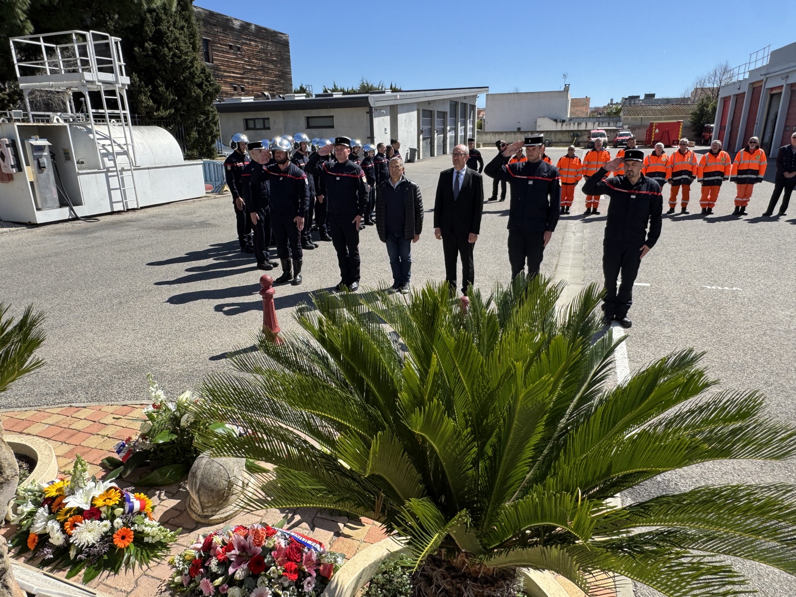 Autour du maire Paul SABATINO et de son premier adjoint Francis MONTALBAN et de Michel JAUFFRET, adjoint à l’environnement, étaient rassemblés devant le monument aux morts de la caserne, les sapeurs-pompiers, les officiels, le chef de centre de la caserne de Marignane le capitaine LEMOINE, ainsi que les représentants des membres bénévoles du CCFF de la commune du Rove.