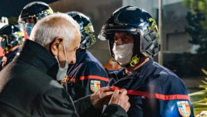 Il nous a rappelé son admiration pour ces personnels « Je salue le courage et le dévouement des sapeurs-pompiers volontaires et professionnels, d’ici et d’ailleurs. Mon admiration est totale. Evidemment quand on a un territoire comme celui du Rove qui possède 87% de son espace en site classé, le risque incendie est majeur. Nous en avons fait souvent l’amère expérience et le travail des sapeurs-pompiers s’est malheureusement parfois soldé par des drames humains avec des décès ou des blessures graves. Mais le travail des sapeurs-pompiers c’est aussi et surtout des interventions quotidiennes pour porter secours à nos concitoyens que ce soit sur un accident de la route, un accident domestique, sur son lieu de travail, à l’école, au cours d’une catastrophe naturelle et dans tant d’autres situations.