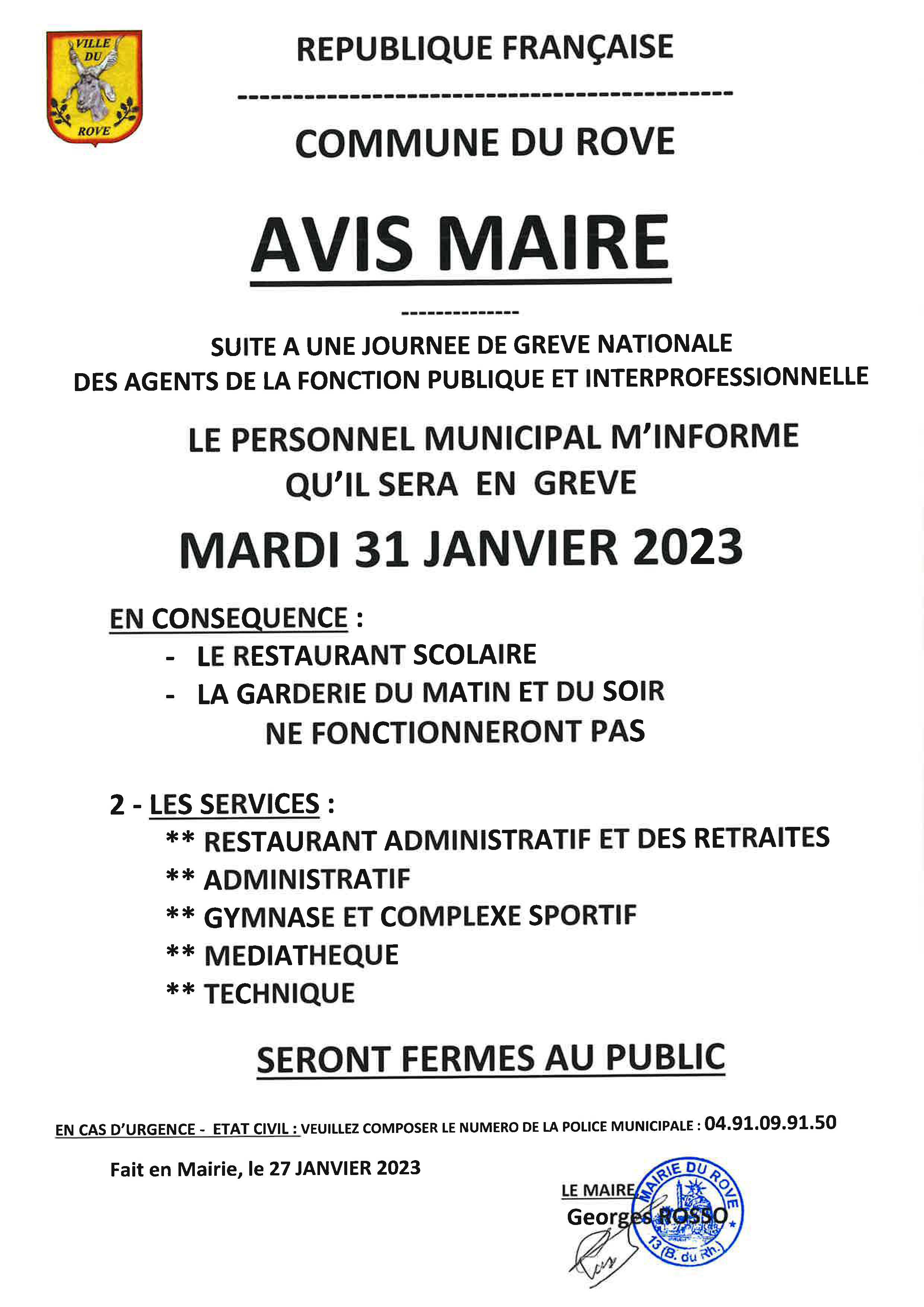 Ce mardi 31 janvier (comme le 19 janvier dernier), la mairie sera fermée à l’occasion de la journée de mobilisation nationale contre la réforme des retraites.