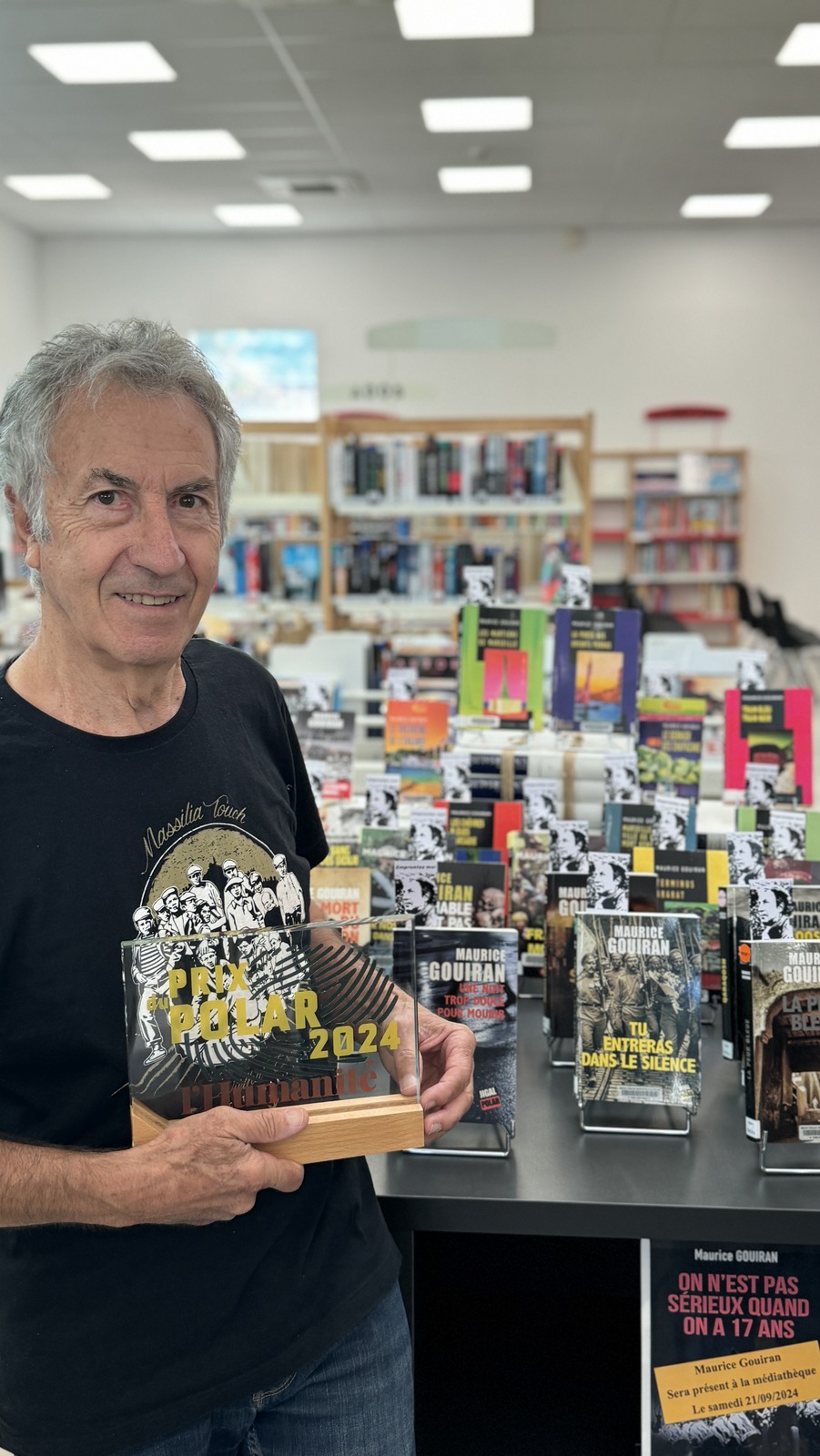 Depuis l'écriture de son premier roman "La nuit des bras cassés" en 2000 qui avait reçu le prix sang d'encre des Lycéens à Vienne Maurice Gouiran enchaîne les polars, les salons littéraires et les prix. Ses 34 polars ont été couronnés par une douzaine de prix dont le dernier "le prix du polar de l'humanité 2024" à Paris parmi des auteurs prestigieux.