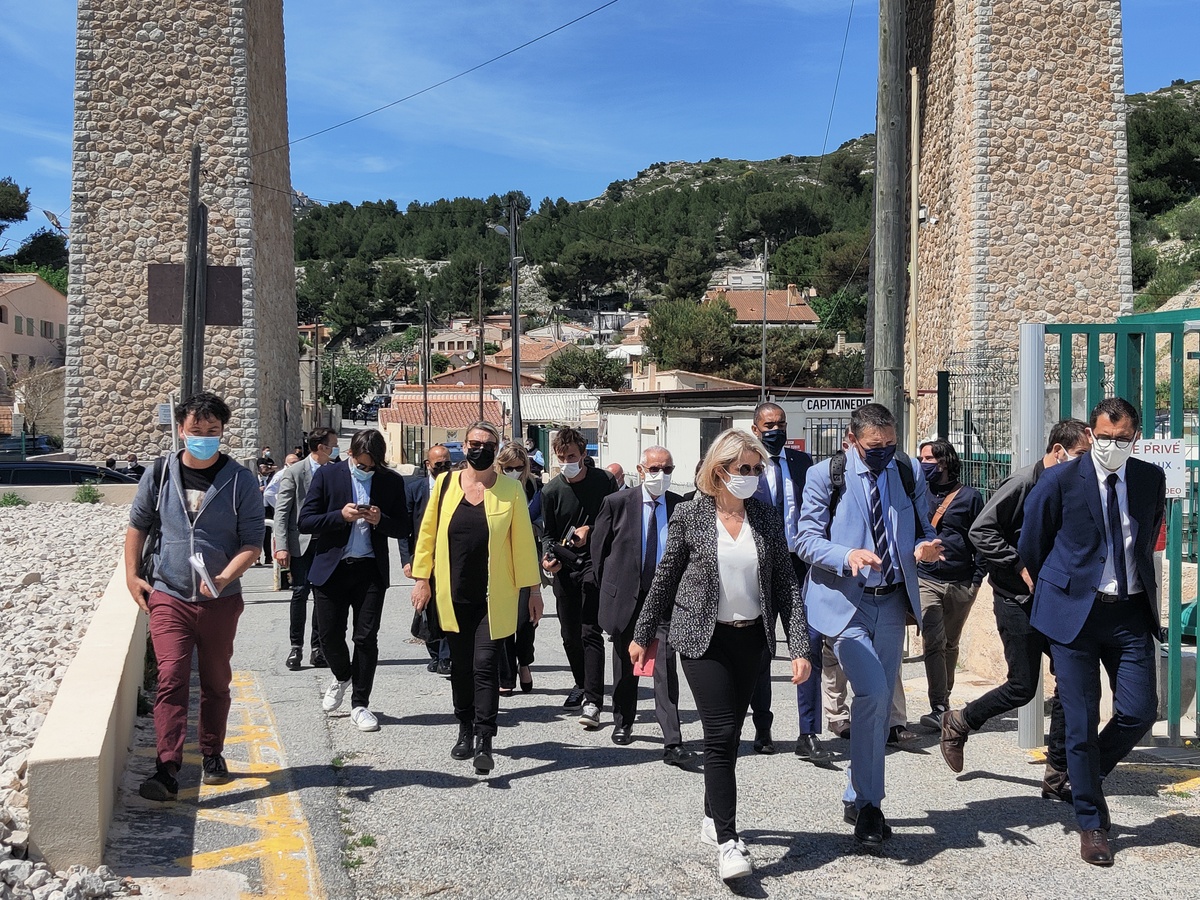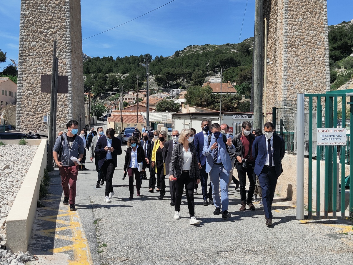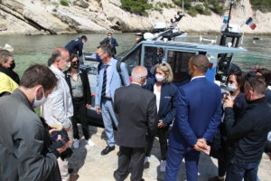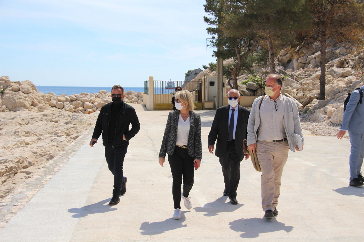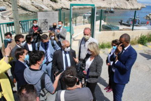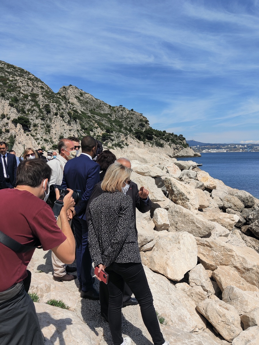 Dans le cadre de sa visite officielle sur Marseille, madame Barbara Pompili, ministre de la transition écologique, a tenu à se rendre sur la commune du Rove, à la calanque de la Vesse, afin d'observer la réhabilitation de la calanque faisant suite à la démolition des cabanons de front de mer menacés par un risque de péril.