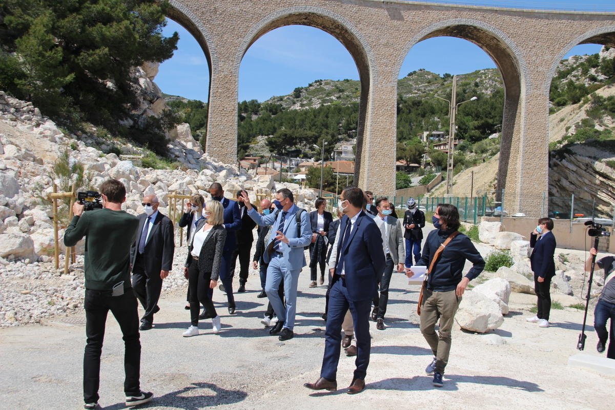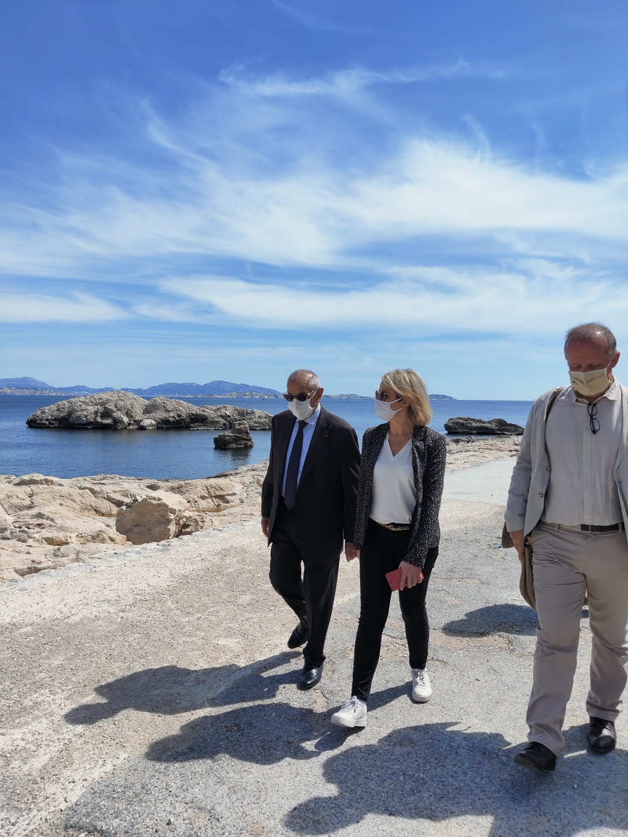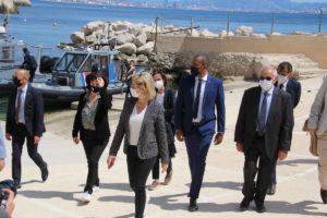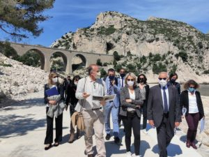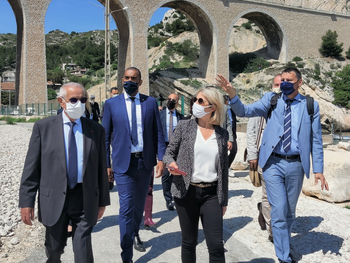 Dans le cadre de sa visite officielle sur Marseille, madame Barbara Pompili, ministre de la transition écologique, a tenu à se rendre sur la commune du Rove, à la calanque de la Vesse, afin d'observer la réhabilitation de la calanque faisant suite à la démolition des cabanons de front de mer menacés par un risque de péril.