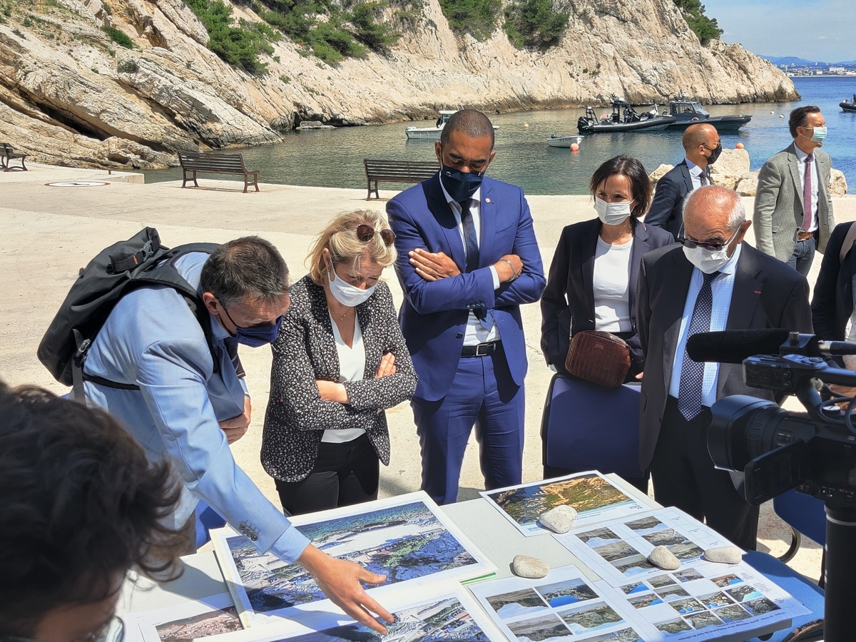 Etaient également présents des représentants de la DDTM13, de gendarmerie et du Conservatoire du Littoral, des parlementaires, et le président du comité calanquais de la Vesse.