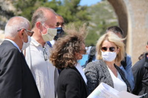 Elle fut accueillie par le maire, M. Georges Rosso, qui lui a présenté les caractéristiques et un bref historique de la commune, en particulier les grandes réalisations menées sous l'impulsion du premier magistrat en matière de défense de l'environnement (bataille contre un projet immobilier pour 65000 personnes, préservation de 2000 hectares en espace naturel devenus site classé depuis 2013, création du parc marin de la côte bleue, des classes de mer, de l'inscription sur la liste verte mondiale des aires marines protégées, Natura 2000, préservation de l'aigle de bonelli, réintroduction de la race caprine du Rove, labellisation AOP de la brousse du Rove, etc).